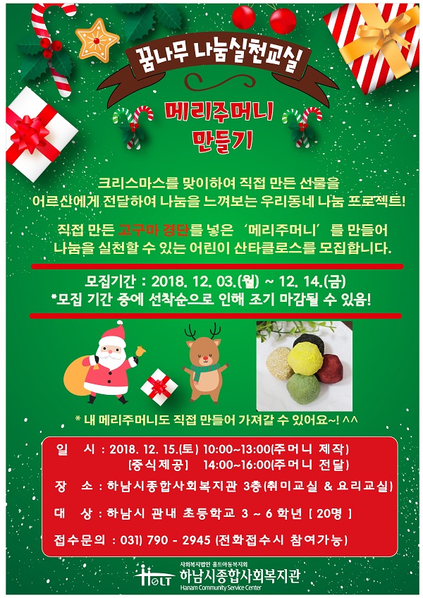 꿈나무나눔실천교실 메리크리스마스 주머니 만들기 모집 실시