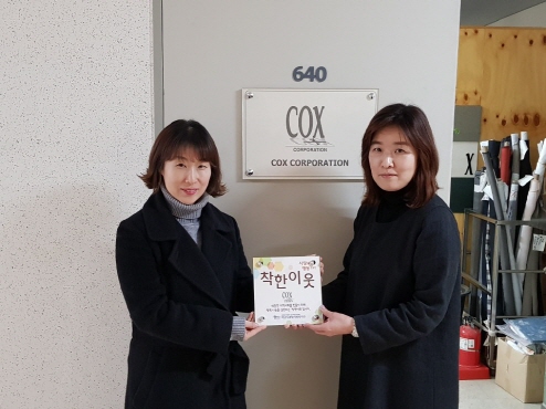 착한이웃 현판전달식(콕스) 작성일 : 2019.01.31 | 조회수 : 11110 2019년 1월 31일(목) 14:00~15:00 콕스와 함께 착한이웃 현판 전달식을 진행하였습니다.착한이웃은 관내 기부문화 확산 및 나눔 문화 형성을 위해 복지관과 지속적으로 사회공헌 활동을 수행한 업체에게 전달되고 있습니다.하남시종합사회복지관은 앞으로 정기적으로 복지관과 함께 사회공헌 및 후원을 해주고 있는 업체 및 기업을 대상으로 착한이웃 캠페인을 지속적으로 진행하여 그 수를 늘려갈 예정입니다. 많은 관심 부탁드립니다.