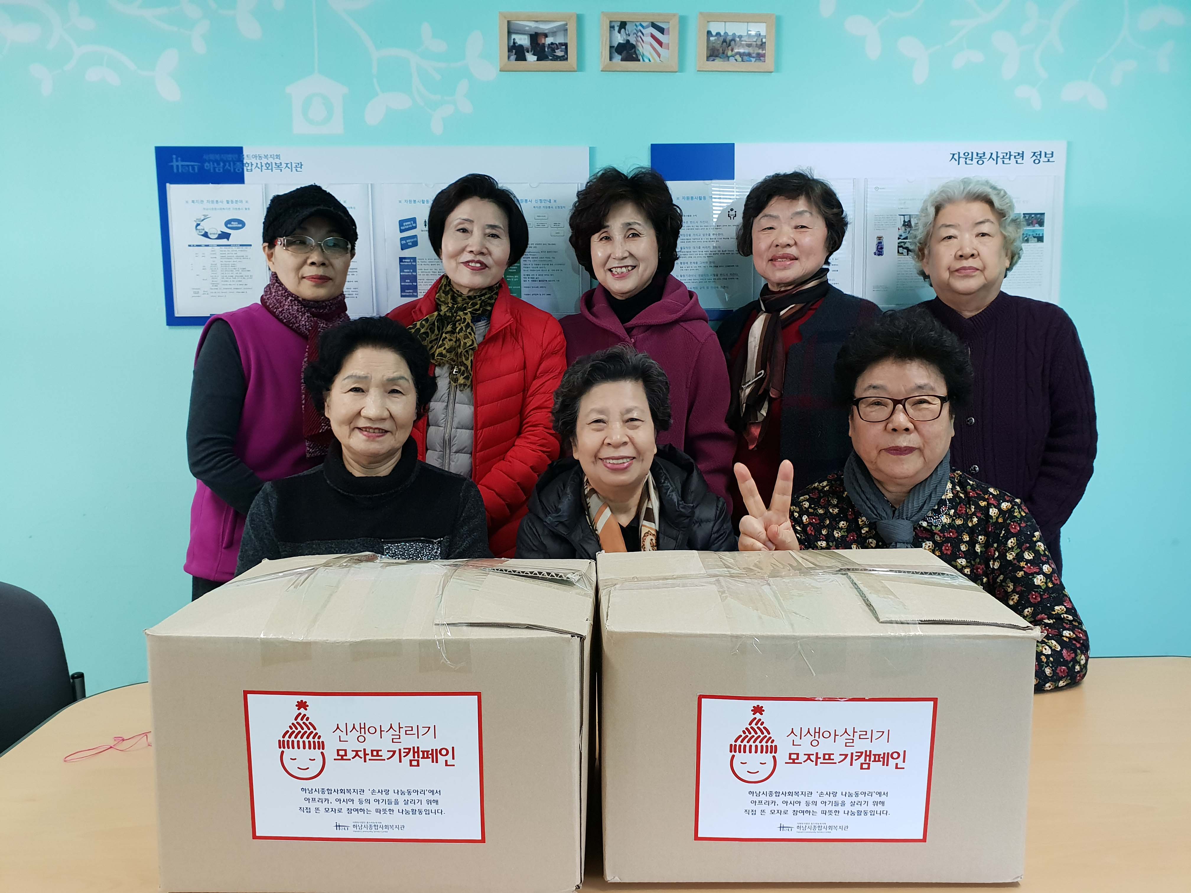 2019년 손사랑 나눔동아리 뜨개질 모자후원 활동 작성일 : 2019.03.11 | 조회수 : 11848 손사랑(뜨개질) 나눔 동아리의 어르신 8명이 함께1년동안 직접 떠서 완성한 신생아 모자 346개를 세이브더 칠드런의 '신생아 살리기 캠페인'으로 보내도록 하였습니다. 어르신들의 솜씨와 정성으로 따뜻한 나눔을 실천할 수 있었습니다.해외의 많은 아동들이 따뜻한 모자로 생명을 이어갈 수 있기를 바랍니다.