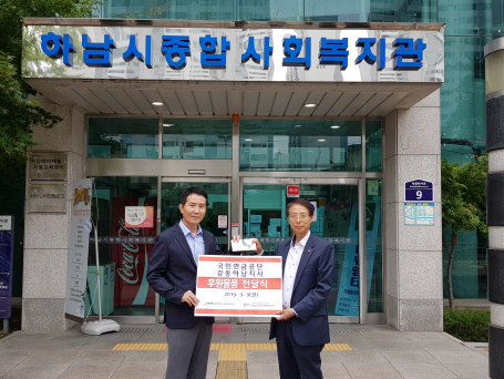 국민연금공단 강동하남지사 후원물품 전달식 작성일 : 2019.09.09 | 조회수 : 11717 2019년 9월 9일(월) 13:00~14:00 국민연금공단 강동하남지사에서 "명절을 앞두고 조금이나마 도움이 되었으면 좋겠다. 즐거운 명절 되시길 바란다."며, 소중한 후원물품을 후원해 주셨습니다.국민연금공단 강동하남지사 임직원분들께 감사드리며, 후원해 주신 소중한 후원물품은 지원이 꼭 필요한 대상자가정에 전달하도록 하겠습니다.늘 변함없는 지속적인 후원에 다시한번 감사드립니다.