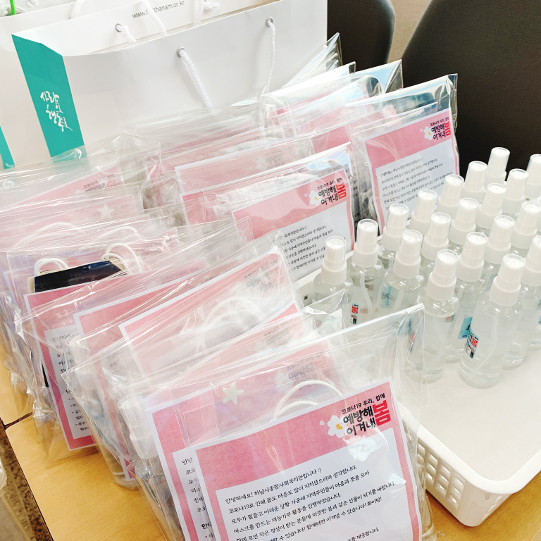 지역주민들이 만들어주신 마스크와 손소독제,