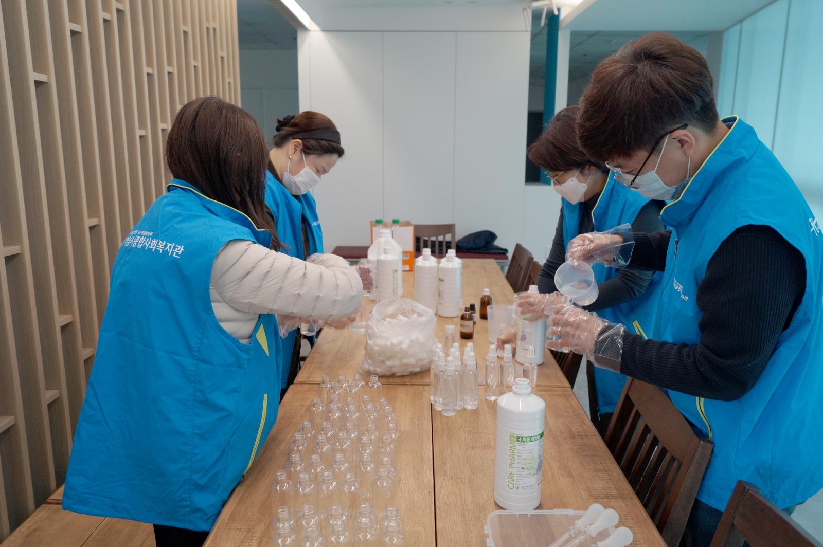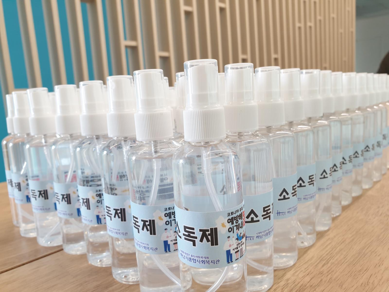 마스크와 전달할 소독제를 제작하였습니다.