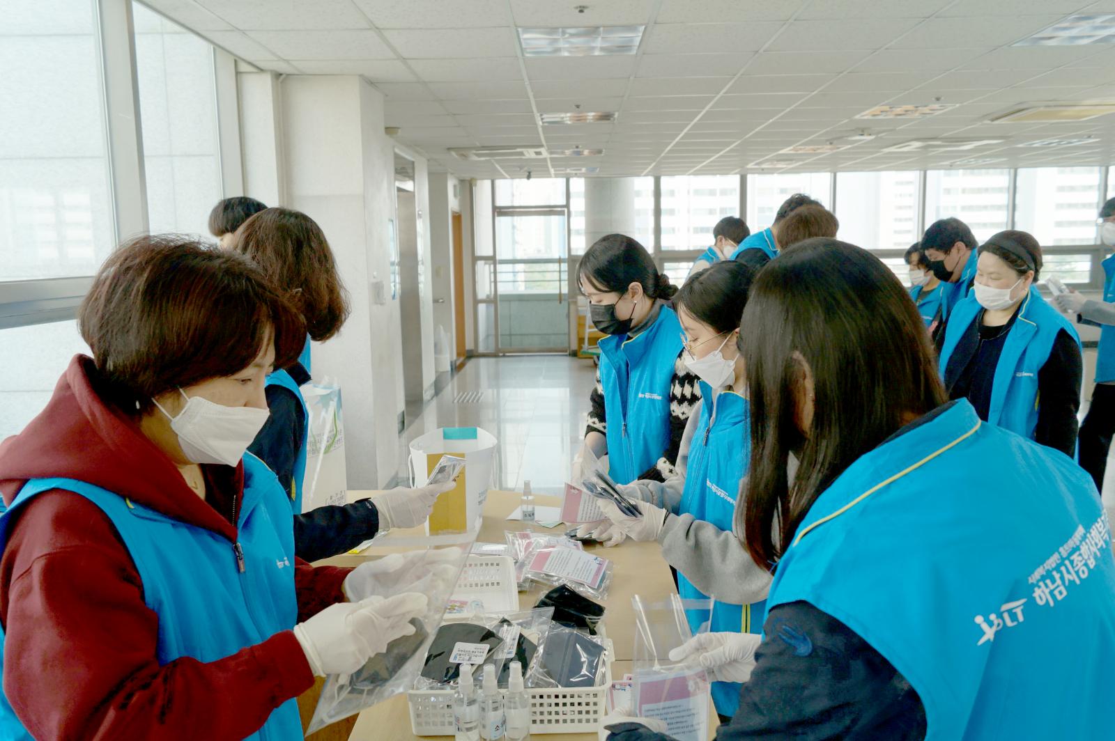 마스크와 소독제, 안내문을 담아 포장한 뒤