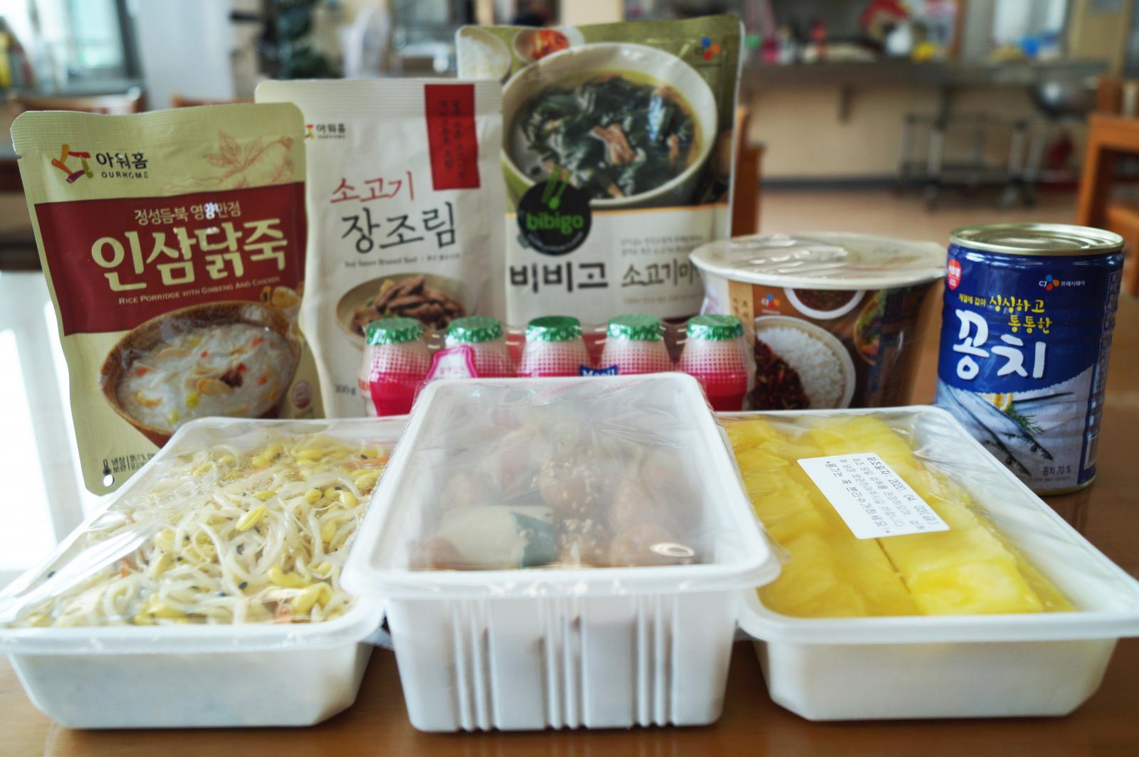 장기간 두고 먹을 수 있도록 조리식품을 대체한 통조림, 즉석조리식품, 간식 등을 함께 포장하여