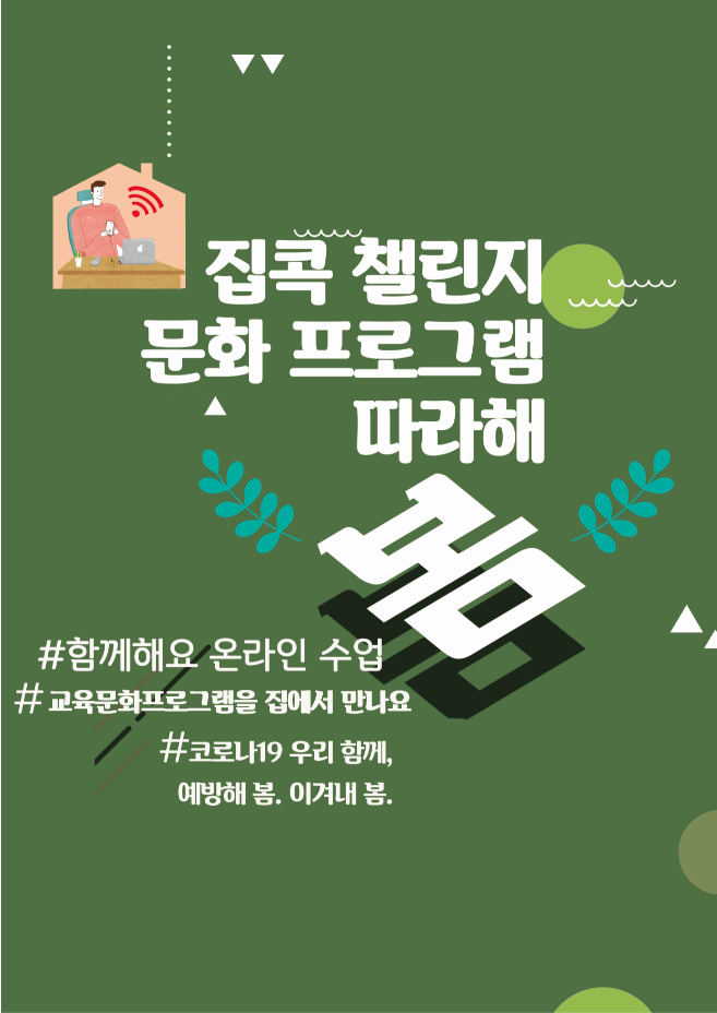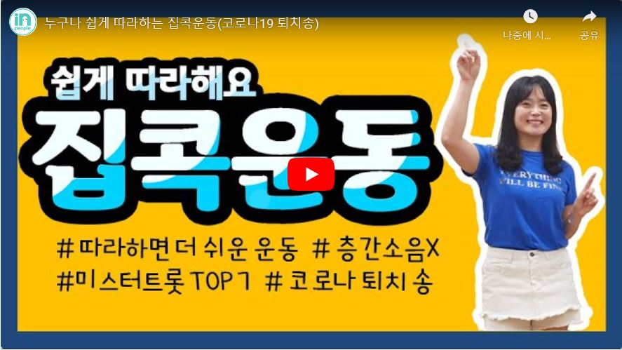 집콕챌린지 3탄! #함께해요 집콕체조 작성일 : 2020.04.21 | 조회수 : 13718 집콕 챌린지 3탄 : 함께해요 집콕운동집에서 콕! 하고 있는 지역주민의 스트레스를 날려드리기 위해 복지관에서 온라인 강좌를 준비했습니다.첫번째 강좌는 코로나19 퇴치송으로누구나 쉽게 참여할 수 있는 신나는 건강체조입니다!하남시종합사회복지관 x 교육문화강사 콜라보로 진행된 집콕문화프로그램 첫번째 강좌를 지금 바로 확인해보세요!