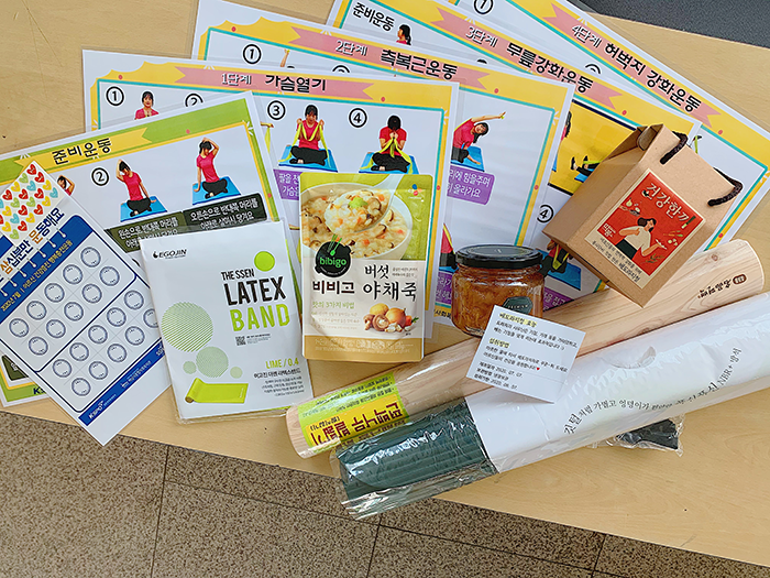 이 외에도 건강식(닭개장, 삼색반찬 등)과 건강교육자료(ex. 고혈압 등)를 마련하여