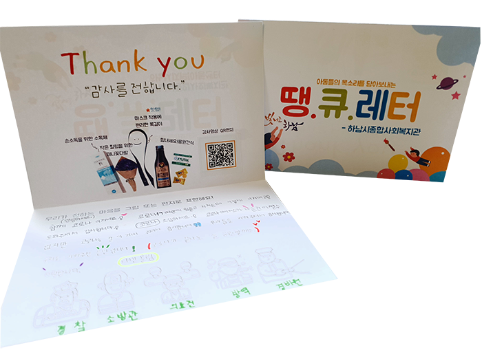 아이들이 보내준 '땡큐박스'를 열어보니 정성껏 땡큐레터를 작성해서 보내주었네요?!