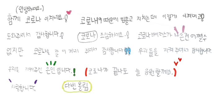 아이들의 마음과 정성을 가지고 하남시에 코로나19로 수고해주시는 분들에게 전달하도록 하겠습니다!