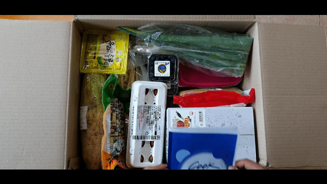 재료들을 포장할 때, 집에서 만들어 먹을 수 있도록 음식 레시피까지 쏙!
