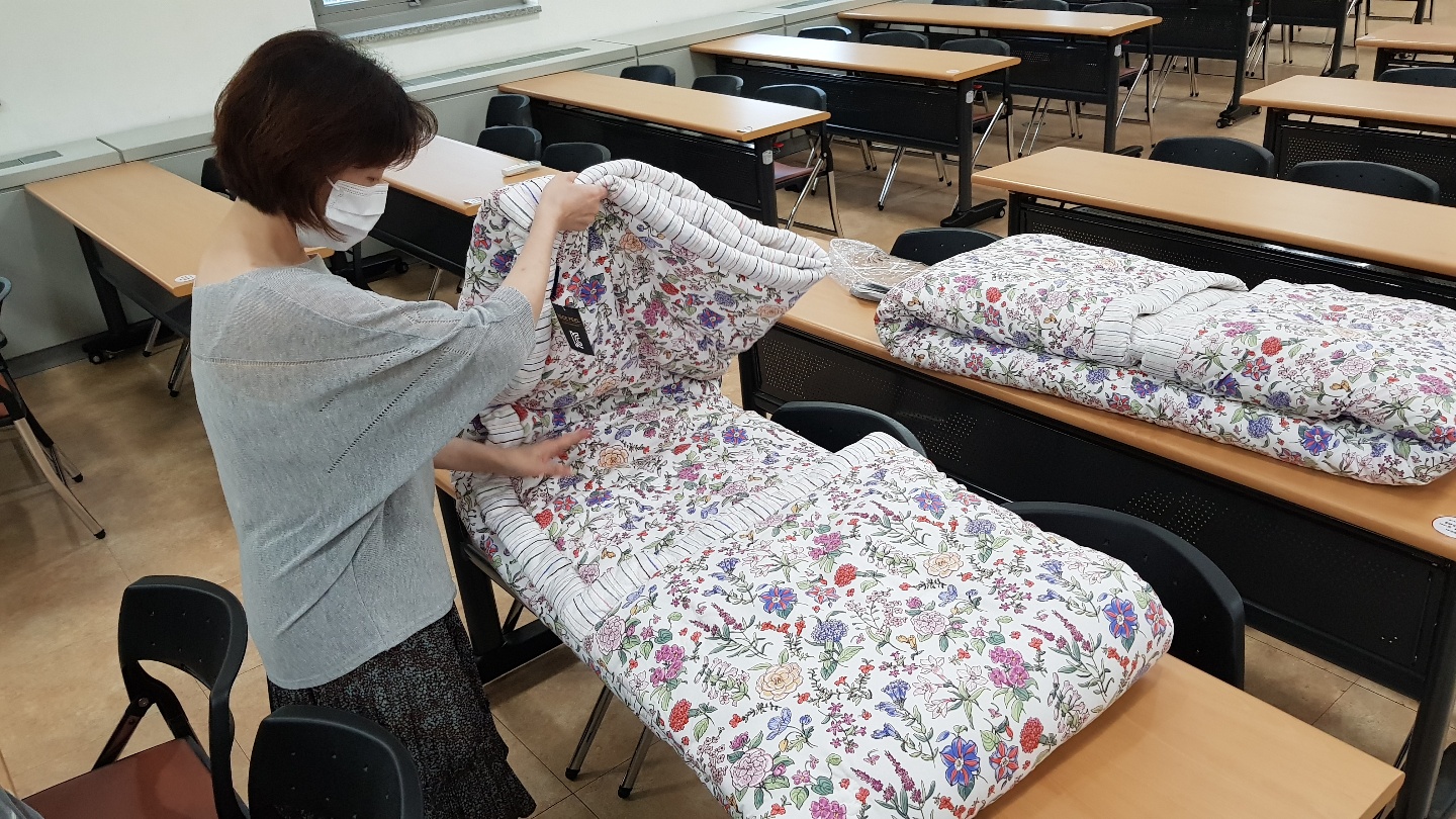 복지관에 도착한 차렵이불에 여름철 건강수칙 안내문을 함께 동봉하여
