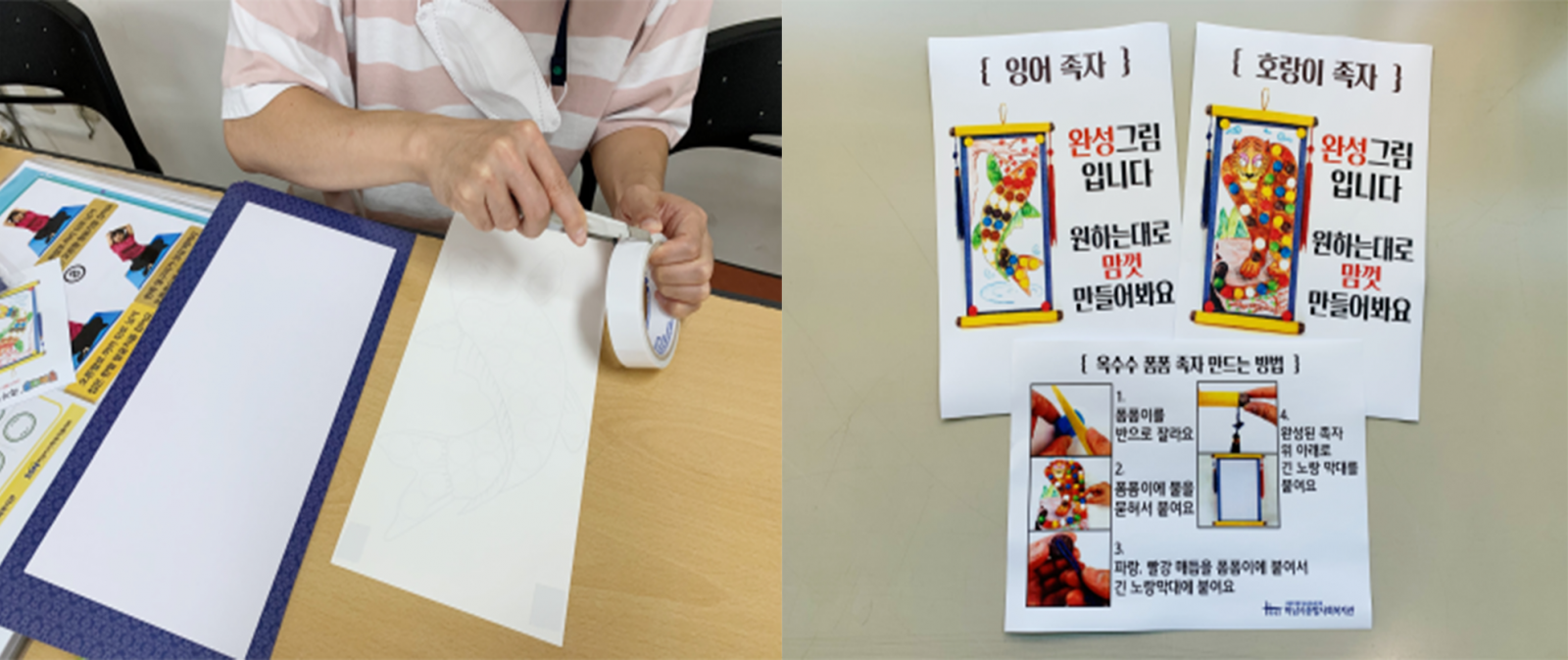 간단한 설명서를 첨부한 '플레이콘(옥수수 폼폼) 족자 만들기'