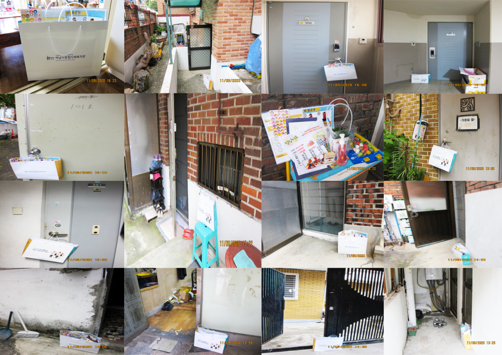 어르신 가정 문 앞에 선물보따리를 놔드렸습니다