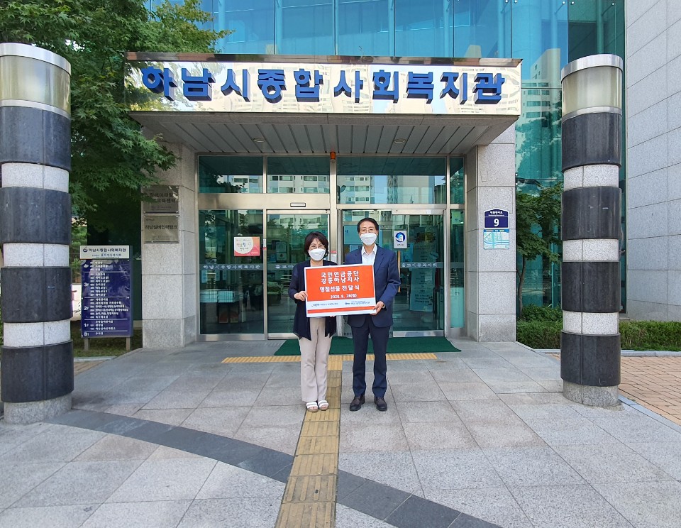 국민연금공단 강동하남지사 후원물품 전달식 작성일 : 2020.09.28 | 조회수 : 13045 국민연금공단 강동하남지사에서 후원물품을 지원해 주셨습니다.채희욱 지사장은 “경제적으로 어려움을 겪고 있는 취약계층 지원에 도움이 되기를 바란다. 앞으로도 사회공헌 활동을 지속적으로 추진하여 나눔을 이어 가겠다."고 전했습니다. 후원해 주신 소중한 후원물품(온누리상품권)으로 관내 취약계층을 향한 온정의 마음이 잘 전달 될 수 있도록 하겠습니다.