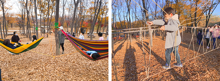 밧줄놀이 외에도 해먹타기, 줄다리타기, 그네 등 다양한 놀거리가 마련되어 있어