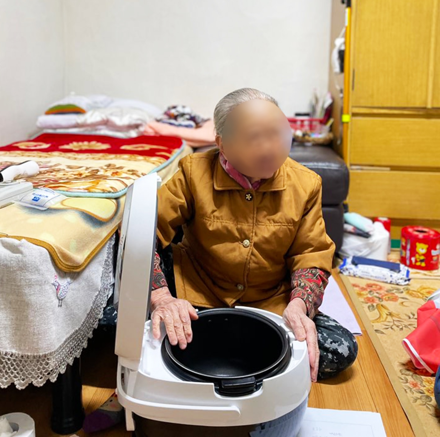 그 중 전기밥솥을 받은 어르신은 선물을 보고