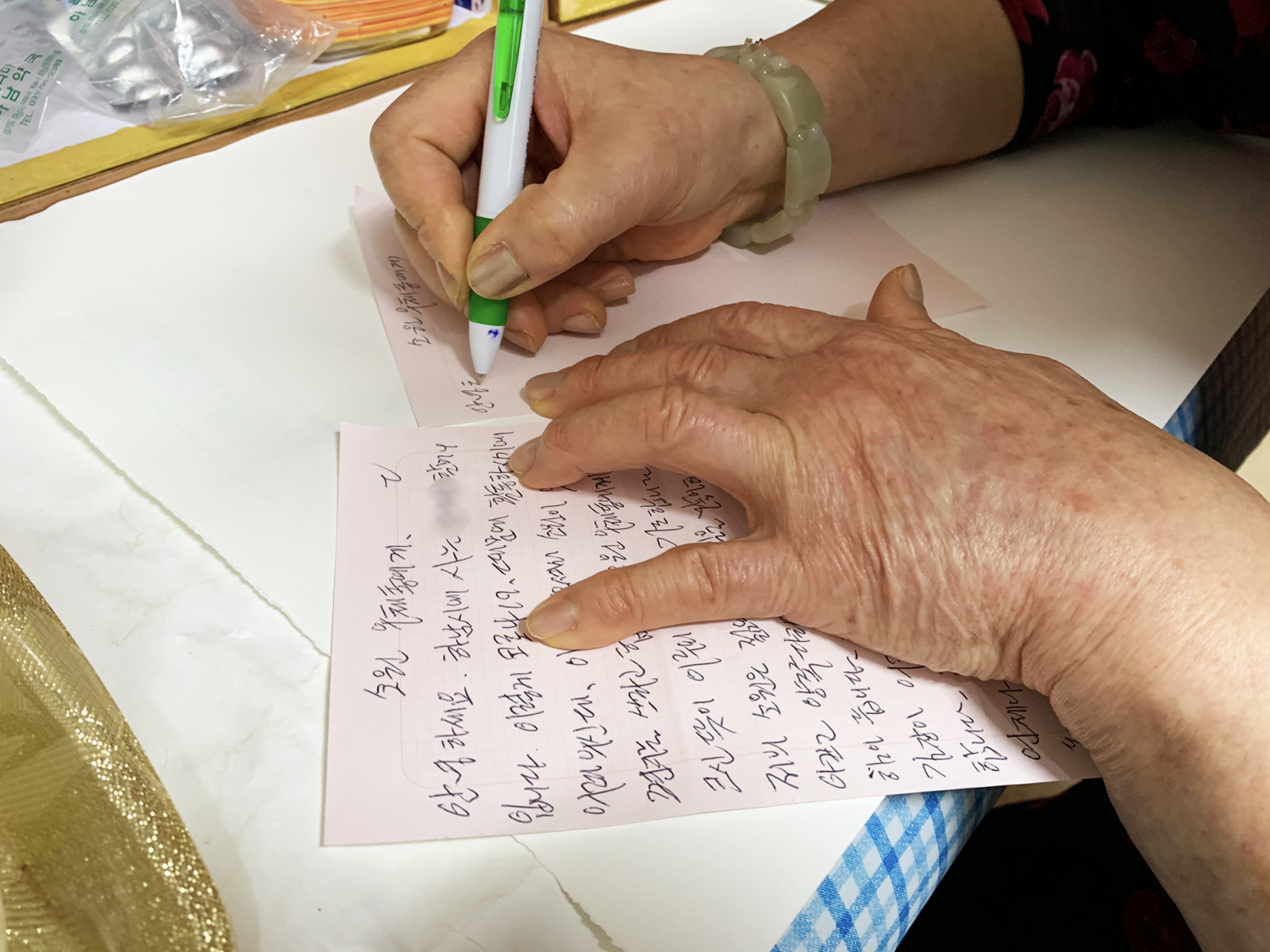 한글을 모르는 어르신, 편지쓰기에 열정이 넘치는 어르신, 필체가 좋은 어르신 등