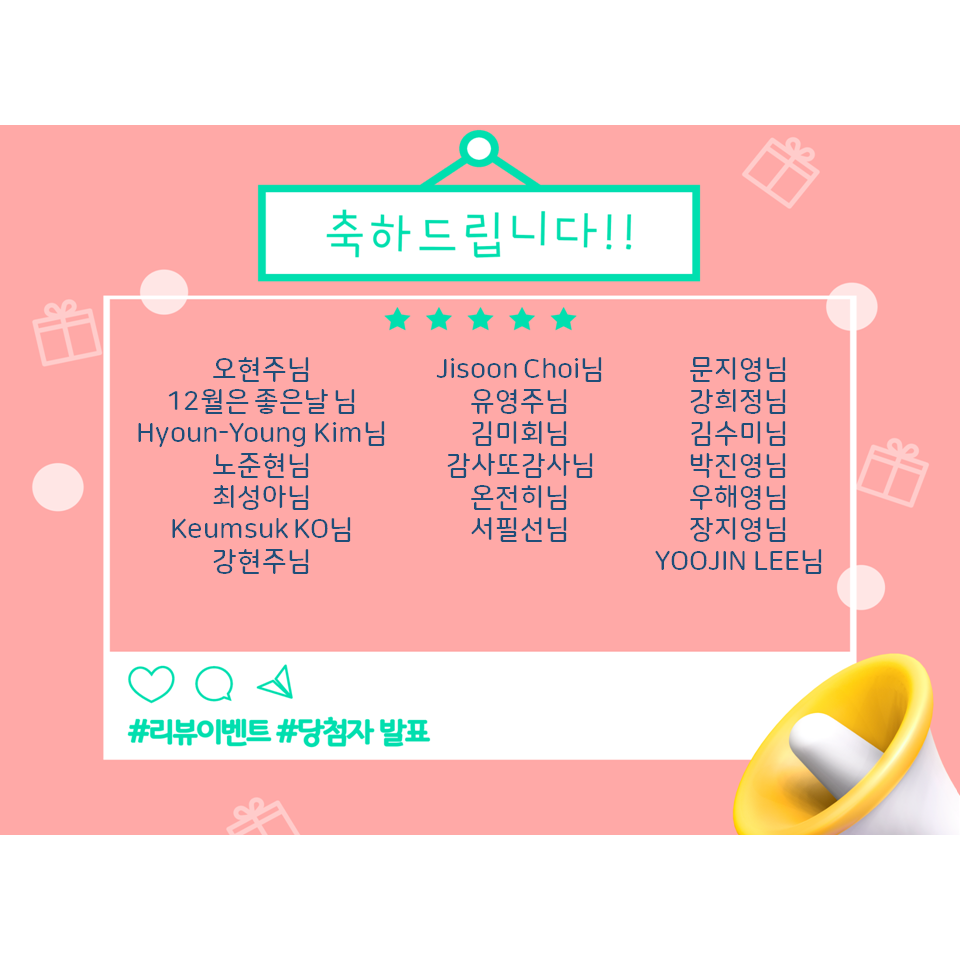이벤트에 선정되신 모든 분들 축하드립니다!