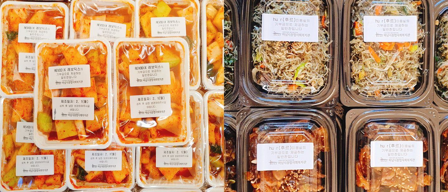 복지관 대상자(20명)와 푸드뱅크(50명)에 전달하고 있습니다.