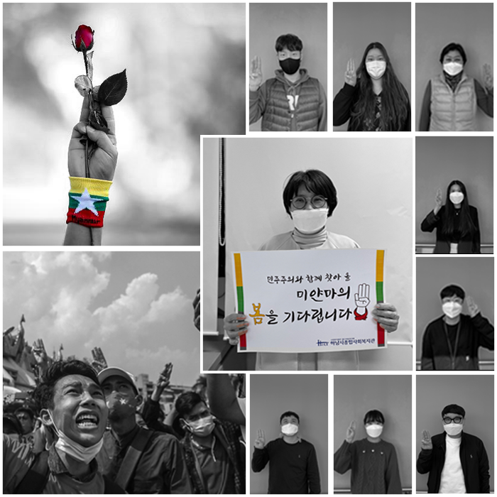 미얀마의 민주화를 응원합니다 작성일 : 2021.04.08 | 조회수 : 12679 안녕하세요 하남시종합사회복지관입니다감일종합사회복지관 이동주 관장님의 지목으로미얀마의 민주주의를 응원하는 캠페인에동참하게 되었습니다.한겨울 매서운 추위가 지나면아름다운 봄꽃이 피어나듯이민주주의와 함께 찾아올 미얀마의 봄을 기다립니다.다음으로 지목할 분은큰나무지역아동센터 서희정 센터장입니다.미얀마의 민주화를 함께 응원해주세요