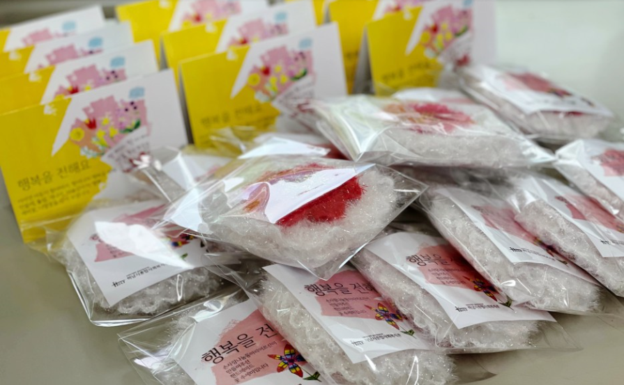직접 제작해주신 꽃 수세미와