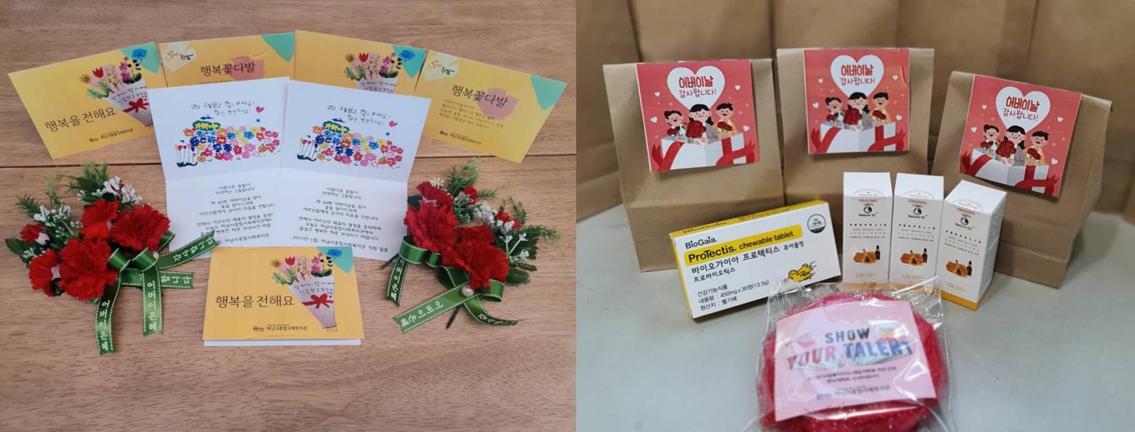 동성제약 이석원이사님이 후원해주신 유산균 등 지역주민들의 마음이 담긴 선물 등