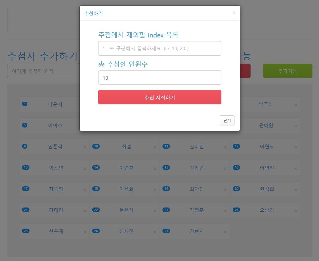 당첨자 열 명을 아래와 같이 같습니다!
