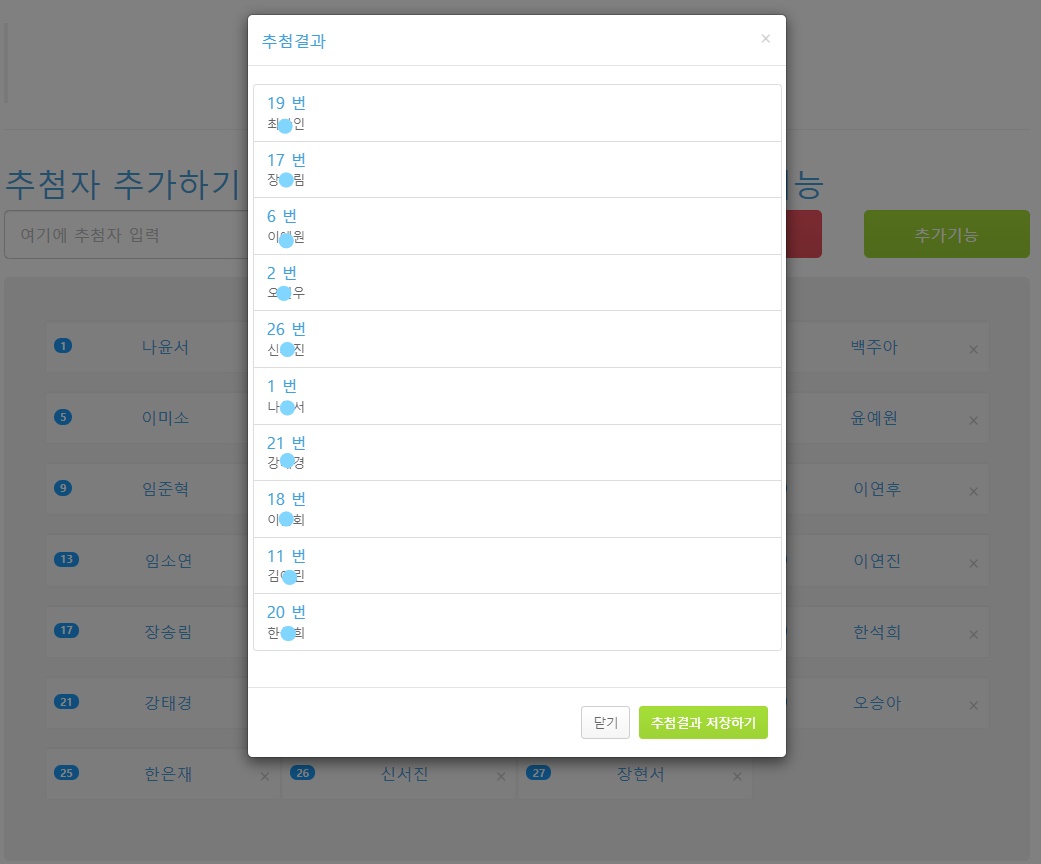 [당첨자: 최0인, 장0림, 이0원, 오0우, 신0진,