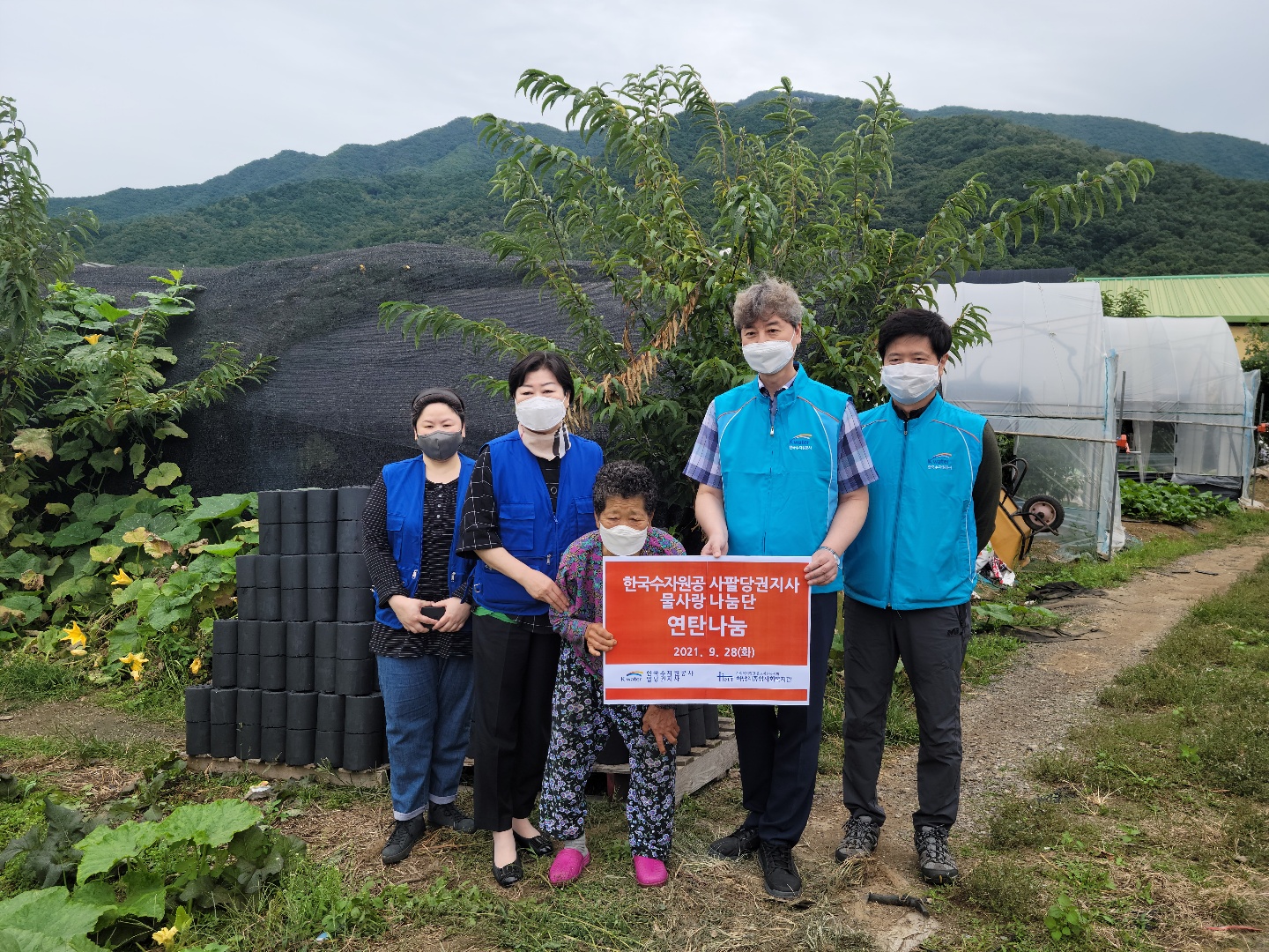 한국수자원공사 팔당권지사와 연탄나눔 진행 작성일 : 2021.09.30 | 조회수 : 10136 한국수자원공사 팔당권지사와 함께 "연탄 나눔"을 진행하였습니다.금일 따뜻한 이웃 사랑을 실천하고자 연탄을 사용하는 관내 저소득층 5가구에 총 2천225장의 연탄을 지원했습니다.매년 복지사각지대에 있는 저소득 가정을 위해 아낌없는 지원을 해주시는 한국수자원공사 팔당권지사 임직원 분들께 감사드립니다.