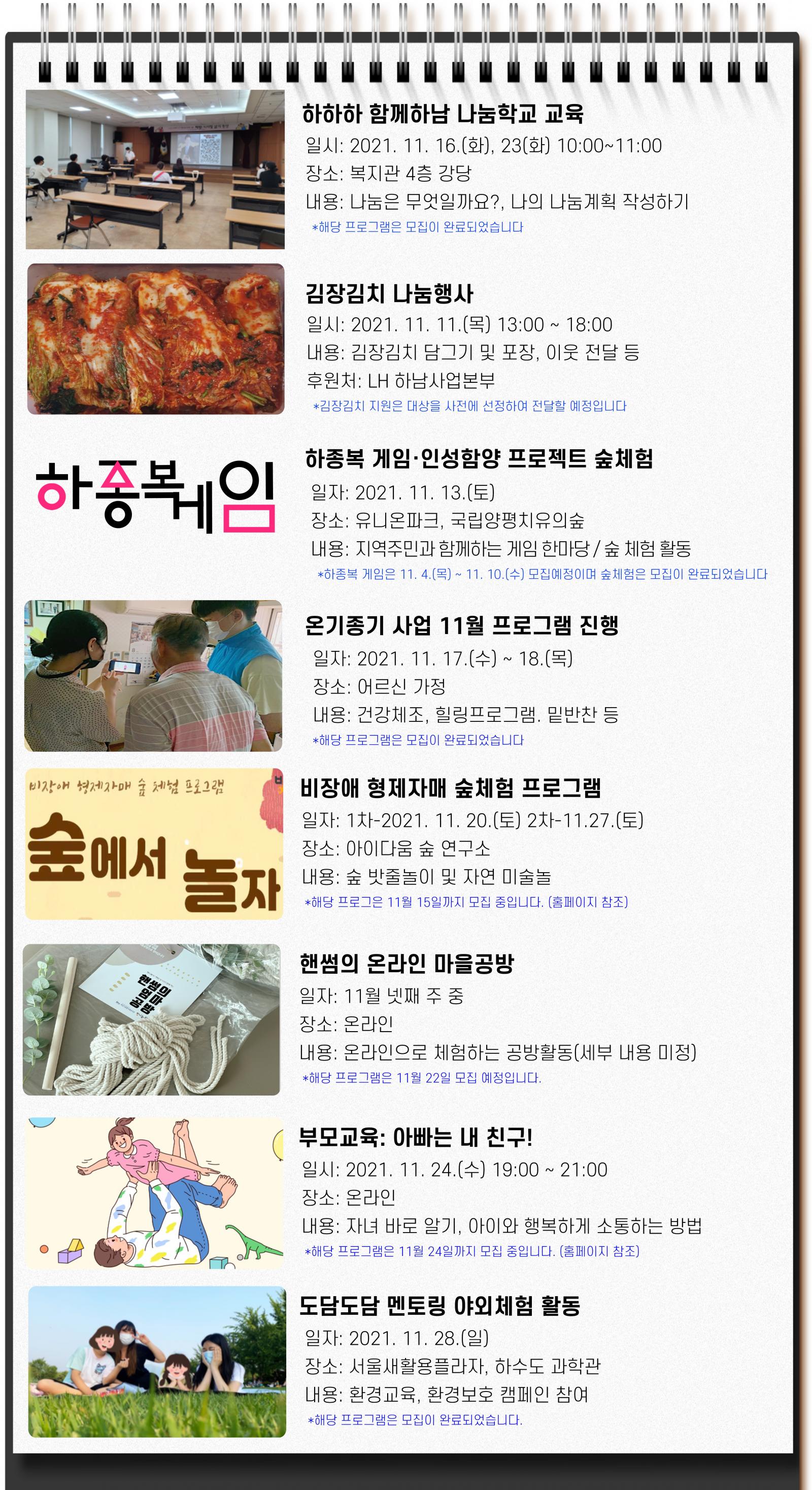 '하종복 게임' 참여자 모집 최종 명단 2021-11-09 조회수 9,151 하남시종합사회복지관 10월 월간소식 2021-11-03 조회수 8,744 2021 공정무역 한마당 2021-11-01 조회수 10,016 서울서문교회와 업무협약(MOU) 체결 2021-10-27 조회수 10,248 체험! 디지털 삶의 현장 활동 시작 2021-10-26 조회수 9,462 ‘세이브 아프간 위민' 챌린지 2021-10-15 조회수 9,515 2021년 한글날 기념 행사 진행(캘리,오프라인 우수작품 전시회) 2021-10-08 조회수 8,266 2021년 온라인 우수작품 전시회 2021-10-05 조회수 10,595 하남시종합사회복지관 9월 월간소식 2021-09-30 조회수 9,477