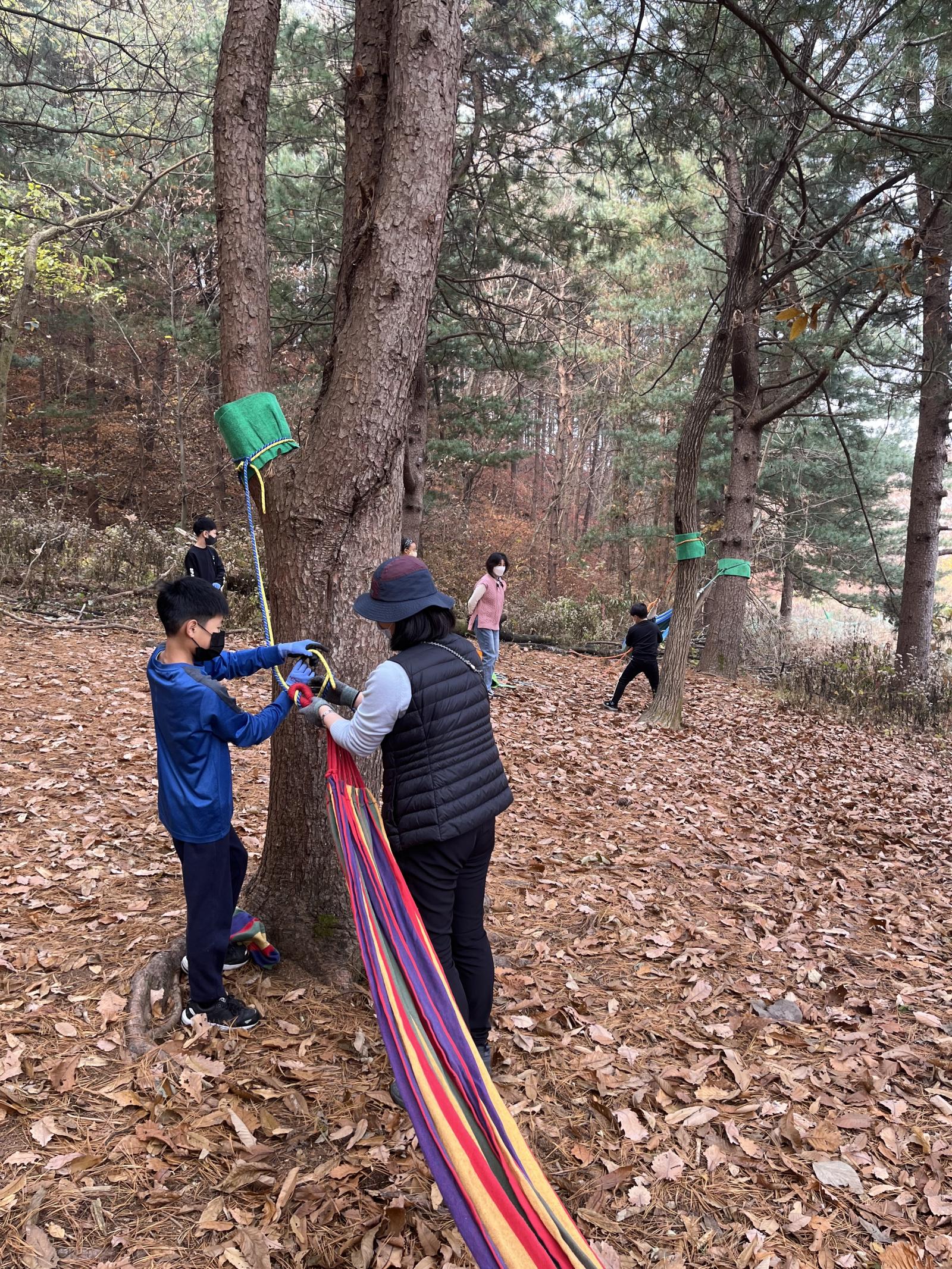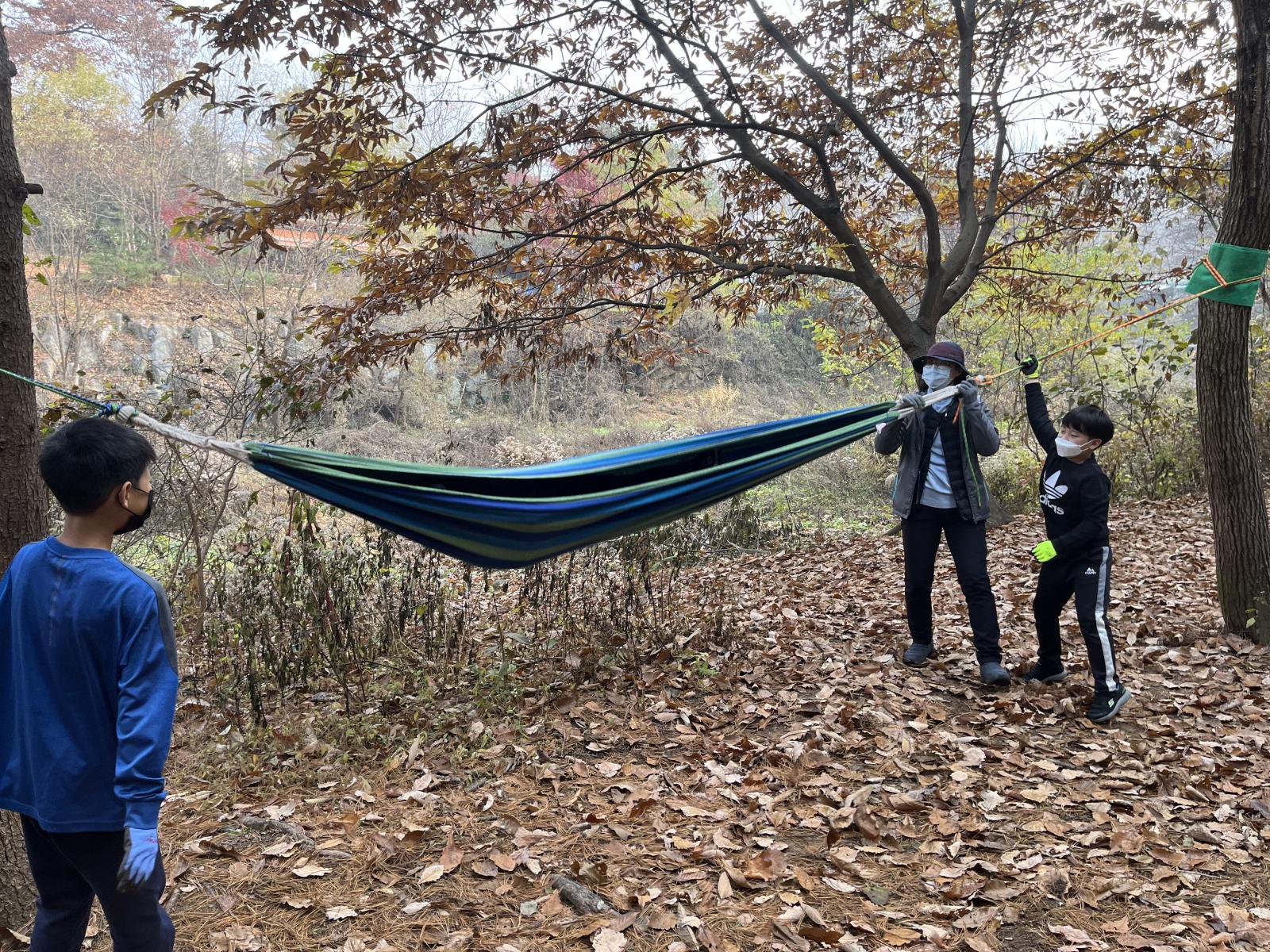 해먹, 그네, 줄다리를 만들며 자연에서의 즐거움과 고마움을 알게되었습니다.