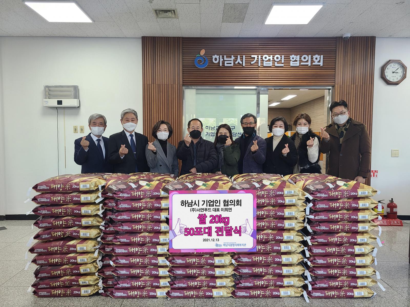 하남시기업인협의회 백미 1,000kg 기증 작성일 : 2021.12.14 | 조회수 : 8831 하남시기업인협의회와 (주)서연푸드에서 12월 13일 지역 내 취약계층을 위한백미 1,000kg을 기증해주셨습니다. 하남시기업인협의회의 임원들은“장기화된 코로나19로 힘들어진 가정에 조금이라도 도움이 되길 바란다.”라고 전했습니다. 지역주민을 위해 소중히 사용하겠습니다. 감사합니다.
