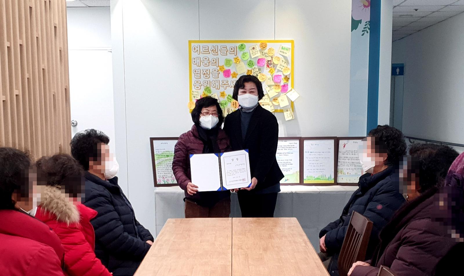 성인문자해득 교육사업 중급반을 수업하고 있으신 노춘희(76세) 강사님께서 ‘2021년 제7회 문해교사 체험수기 공모전’에서 최우수상을 수상하는 쾌거를 이뤘습니다.