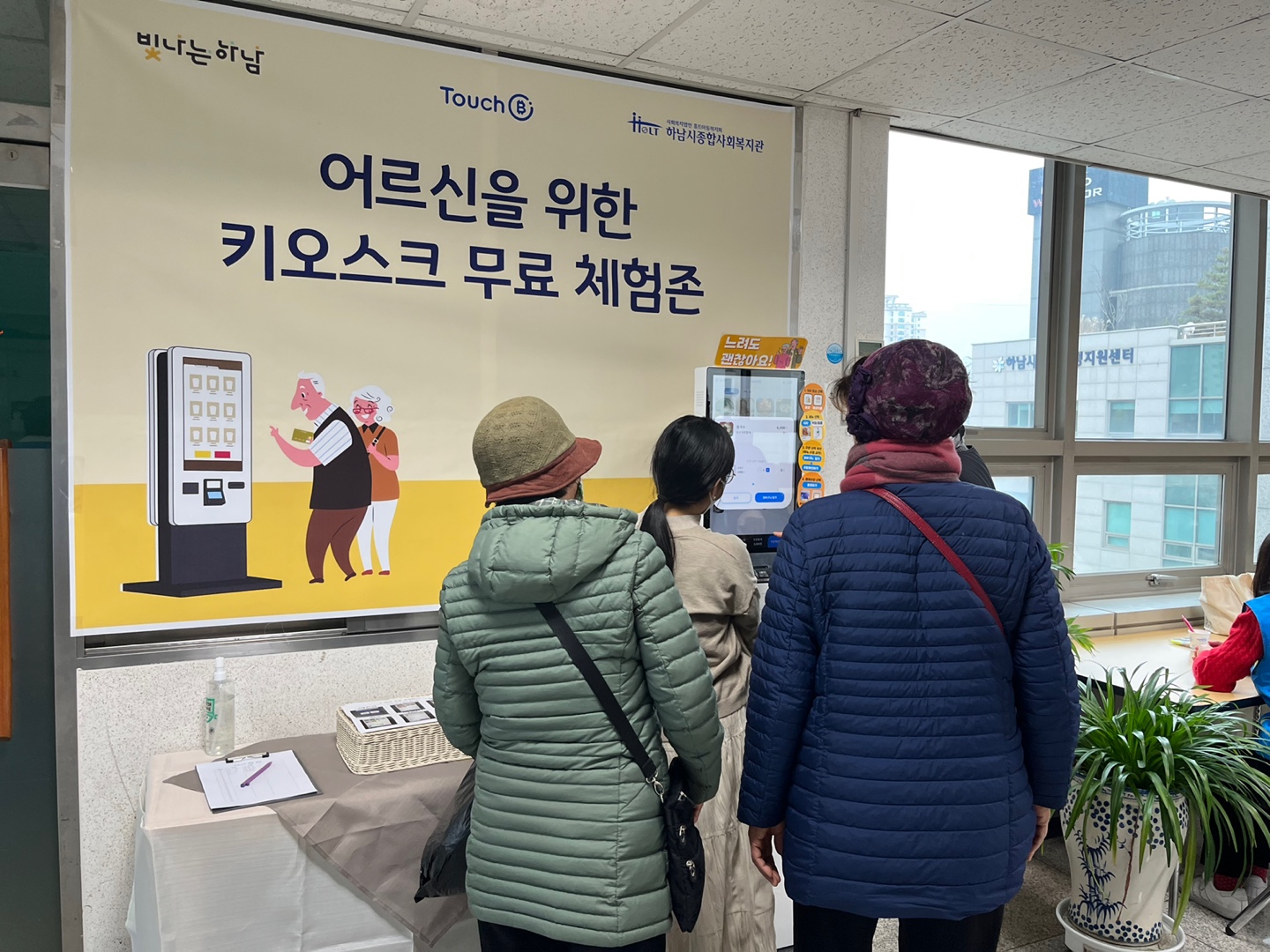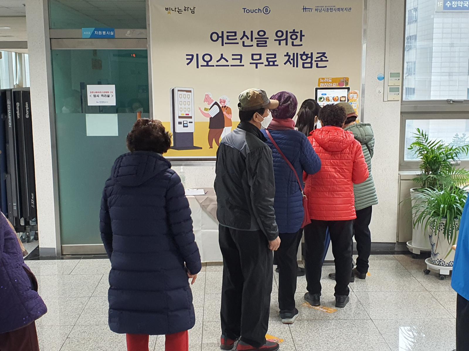 키오스크 체험을 구경하시던 어르신이 한 분, 두 분 모이시더니