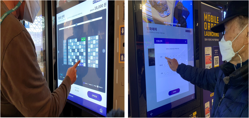 어르신들 주도 키오스크 영화예매를 연습하였습니다.