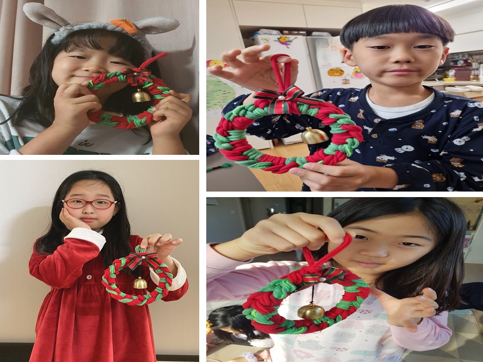 완성된 리스를 들고 사진 한 장 찰칵!