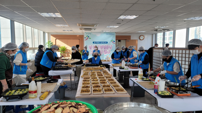다 함께 100인분의 설 명절 음식을 만들었습니다.
