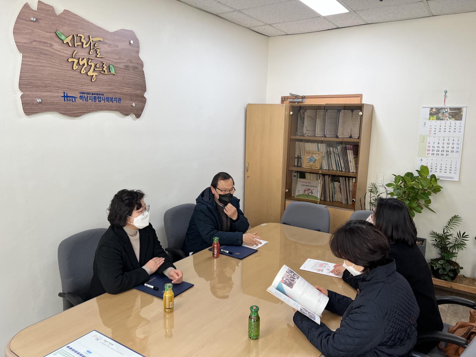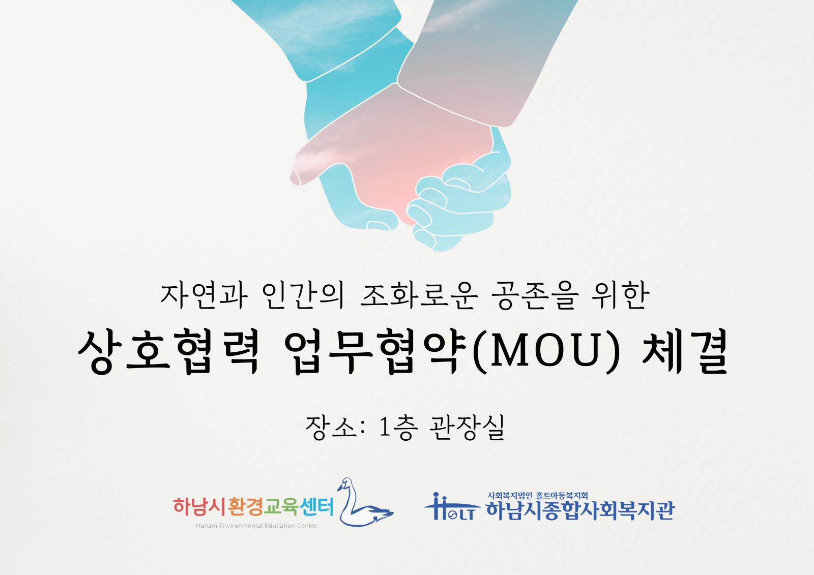 하남시환경교육센터와 업무협약(MOU) 체결 작성일 : 2021.12.15 | 조회수 : 8108 2021년 12월 15일(수)하남시종합사회복지관은 하남시환경교육센터와자연과 인간의 조화로운 공존을 위한 상호협력 업무협약을 맺었습니다.협약내용을 바탕으로 하남시민을 위한 환경교육에 힘쓰고 공동의 프로그램을 함께 진행하며지속가능 하남을 위해 함께 도약하겠습니다감사합니다.