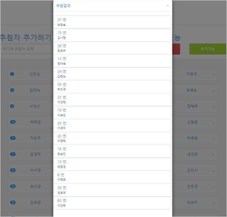 뽑기를 진행하여 15명을 추첨하였습니다!