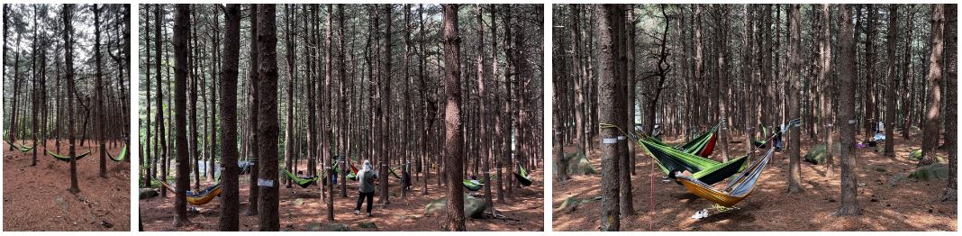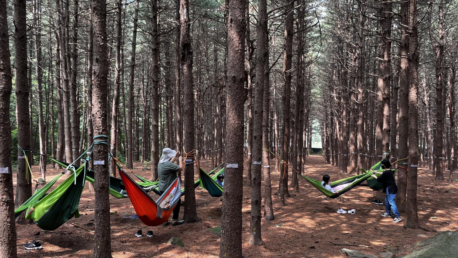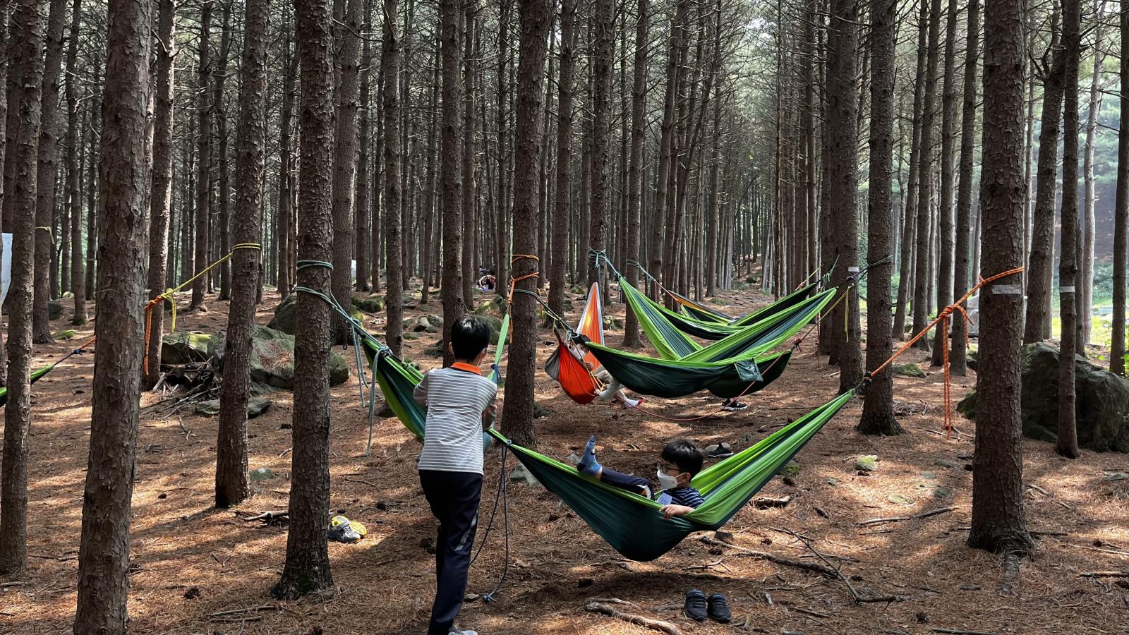 서로 해먹을 밀어주며 해먹에서 자연을 느끼고 즐겼습니다.