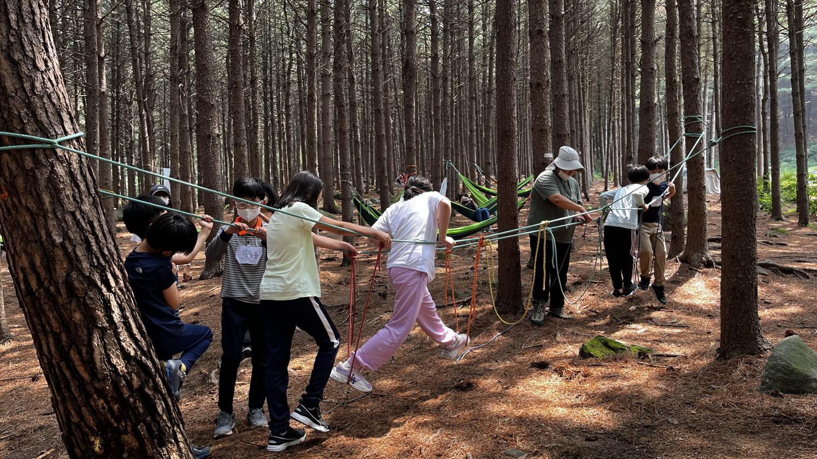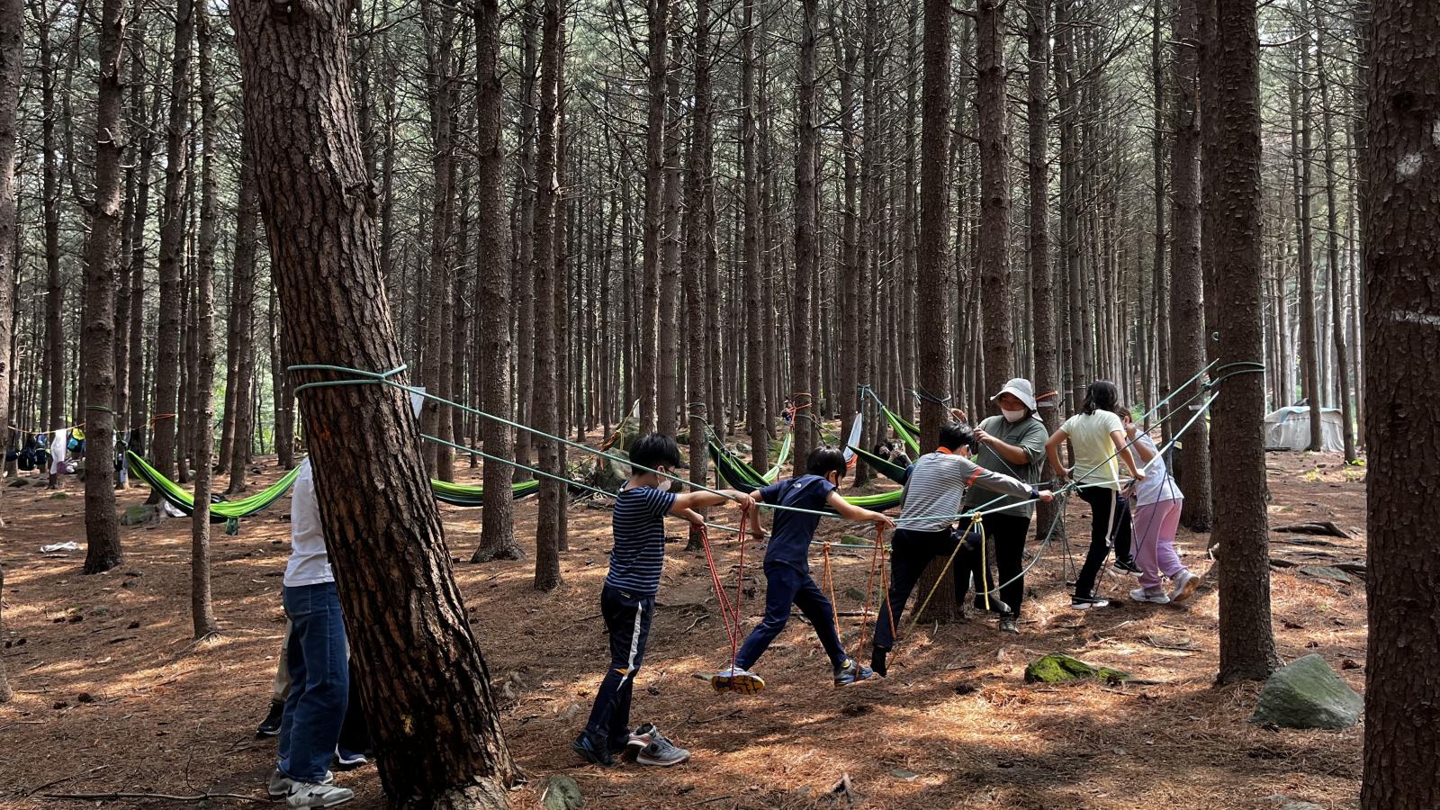 선생님의 도움을 받아 해먹을 설치하고,