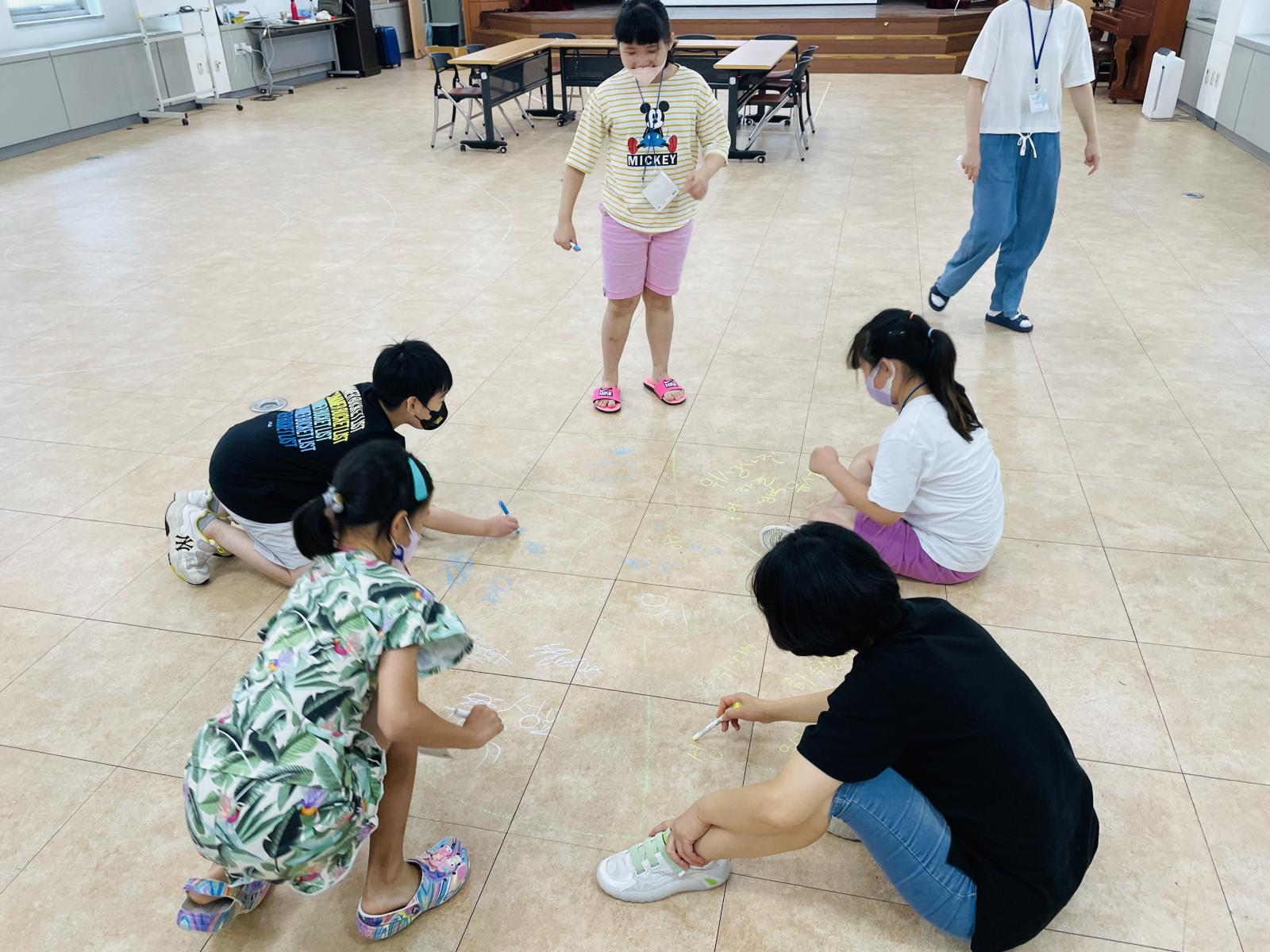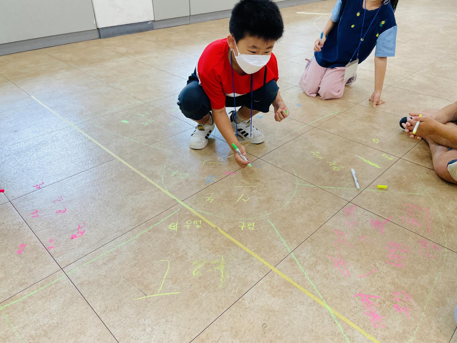 "선생님 바닥에 글씨쓰는거 너무 재밌어요~!!"