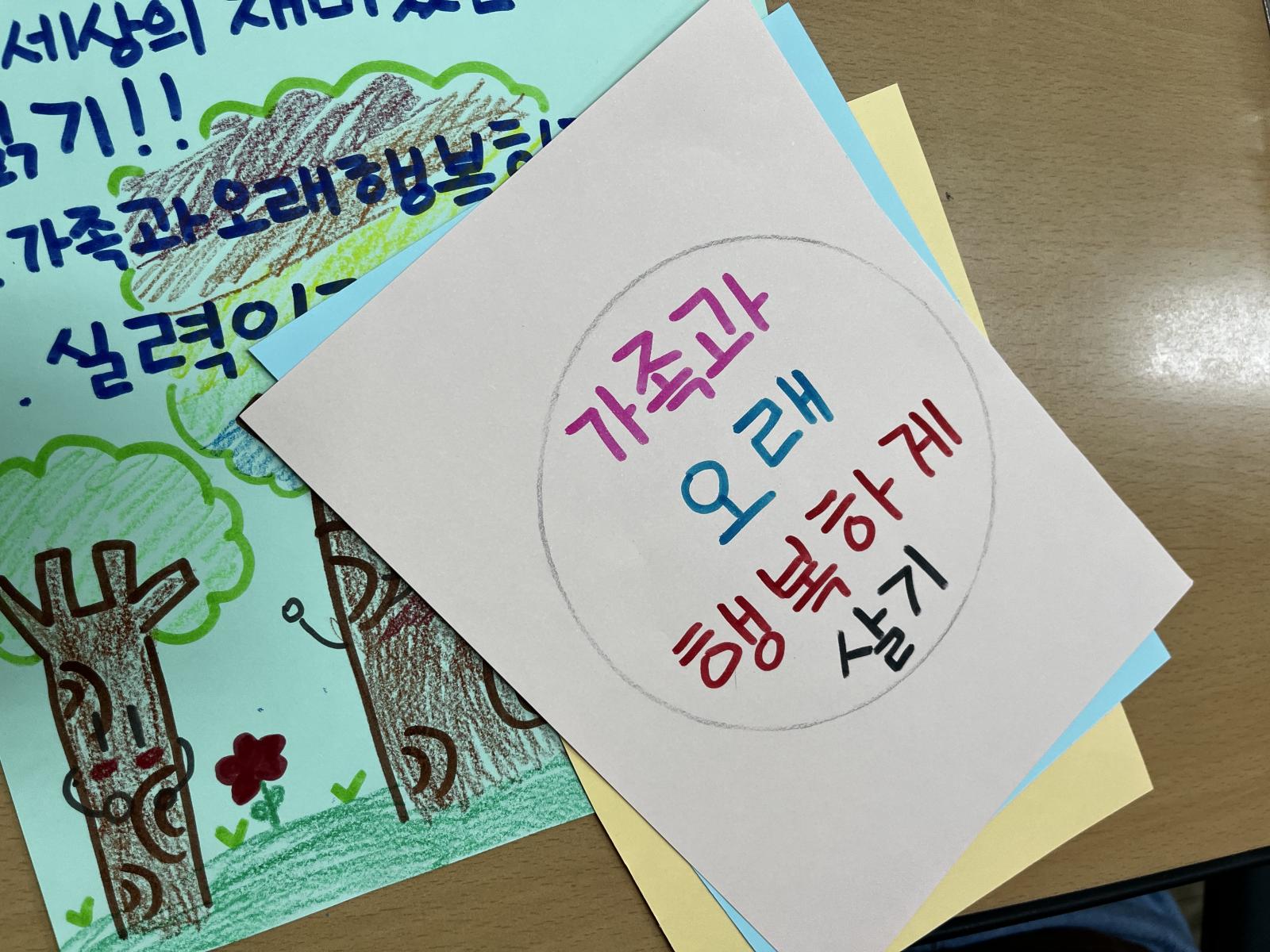 그리고 3주 동안 같이 한 친구들에게 메세지 카드를 적어 선물했어요.