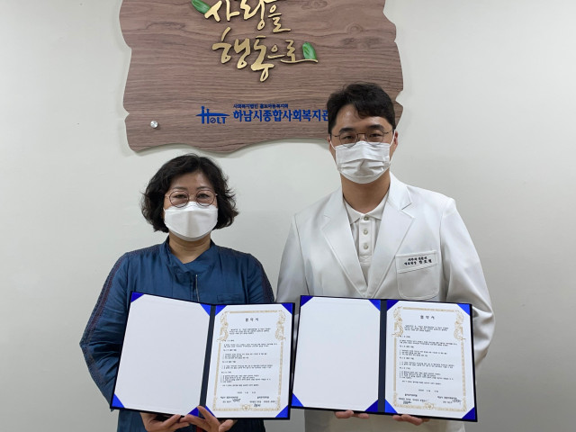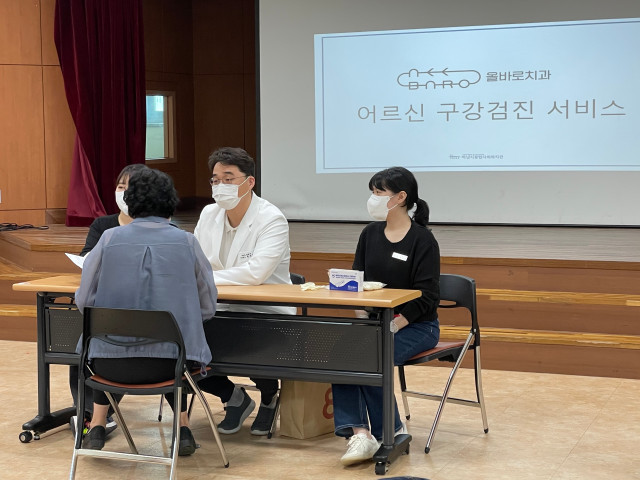 올바로치과의원 상호협력 및 어르신 구강검진 진행 작성일 : 2022.09.14 | 조회수 : 7146 하남시종합사회복지관과 올바로치과의원이 지역주민의 치아건강증진을 위해 8월 31일 상호협력을 맺었습니다.협약을 마친 후 한호철 대표원장과 임직원이 30여 명의 어르신을 만나 기초구강점검과 치아관리 교육, 의료서비스 연계 등의 무료검진 서비스를 제공했습니다.지역주민들의 건강한 치아를 위해 앞장서 나눔을 실천하는 올바로치과의원에 감사의 말씀을 드립니다.