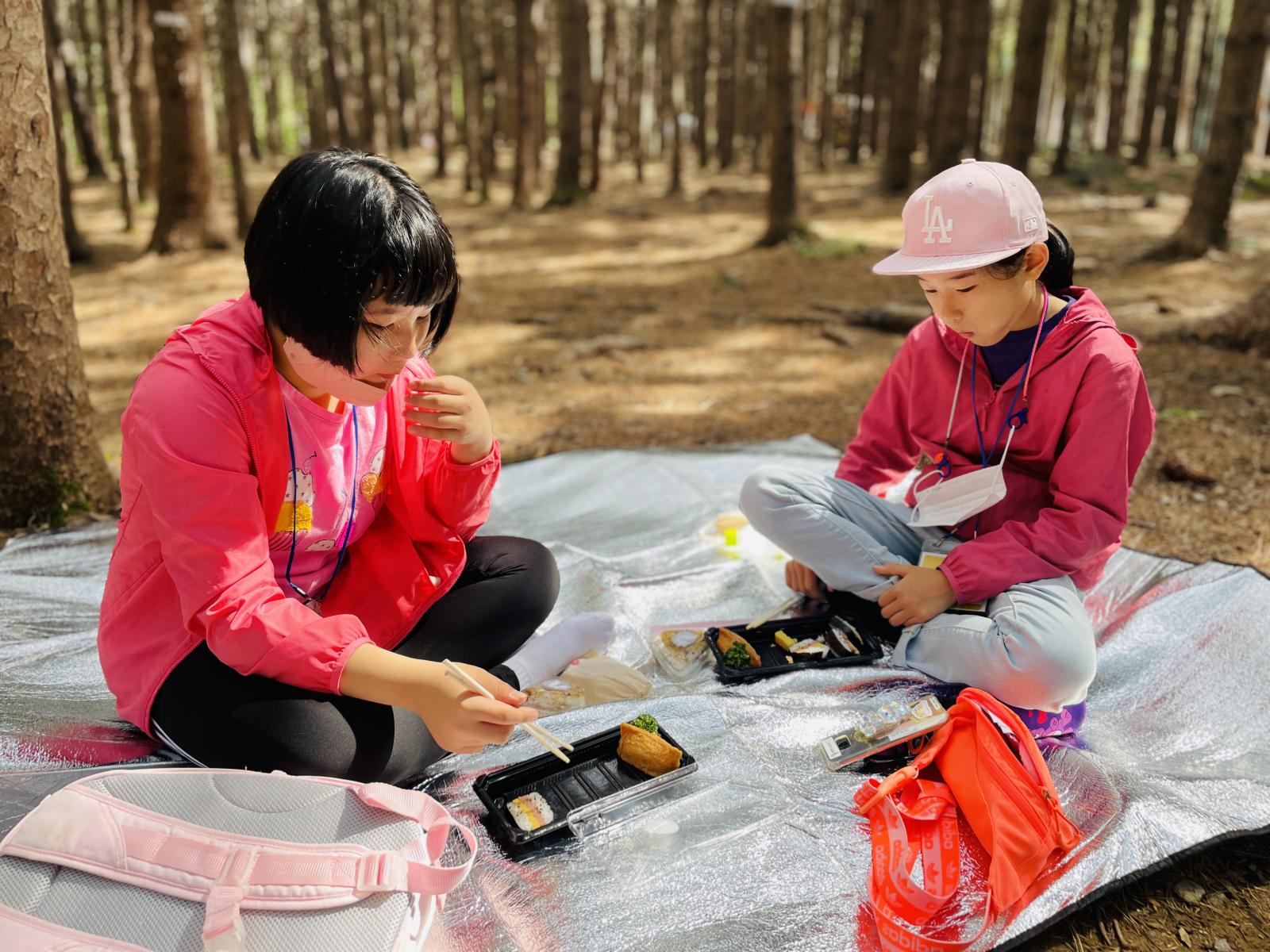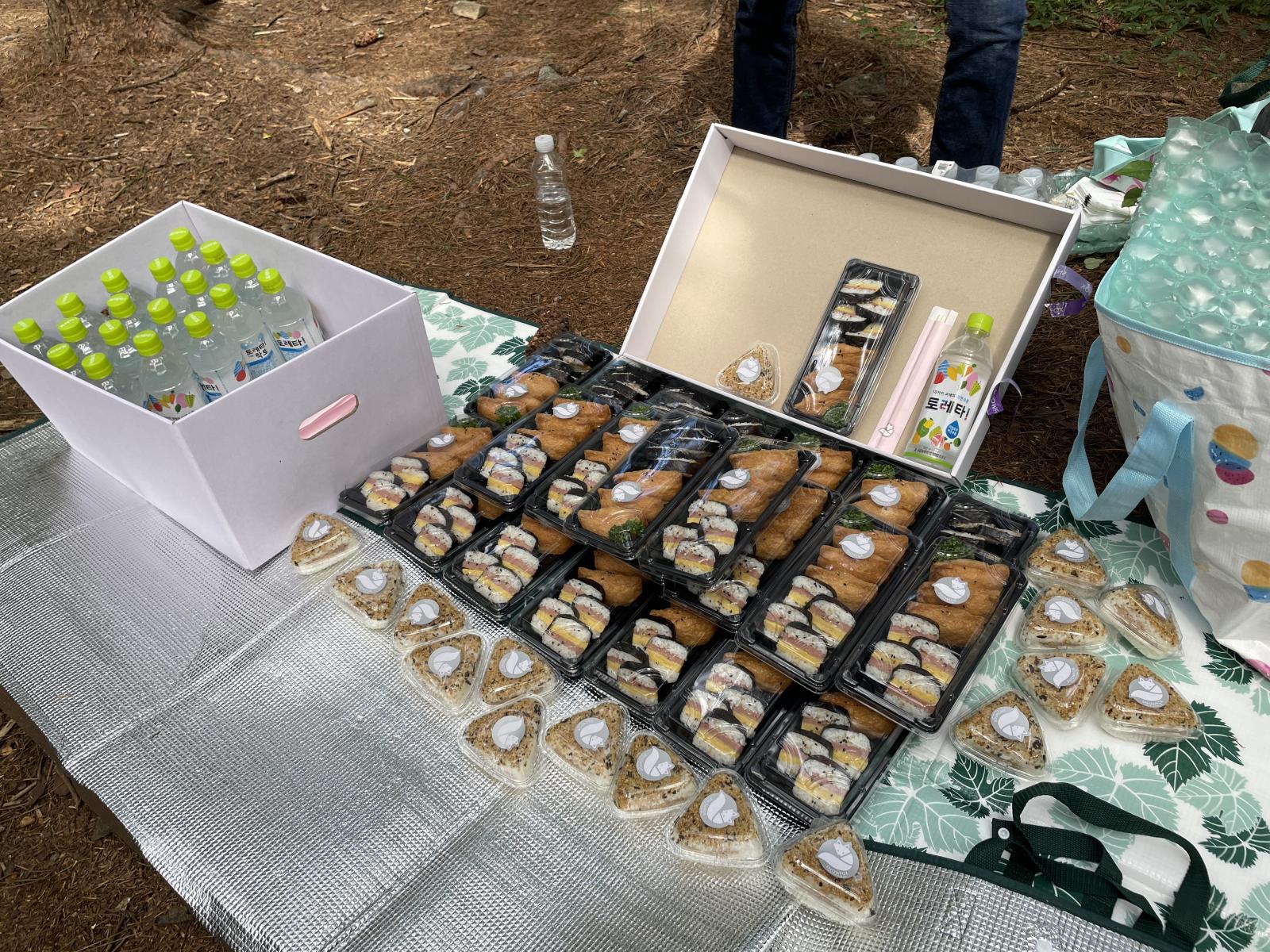 친구들과 옹기종기 모여앉아 유부초밥과 오니기리를 먹었어요~