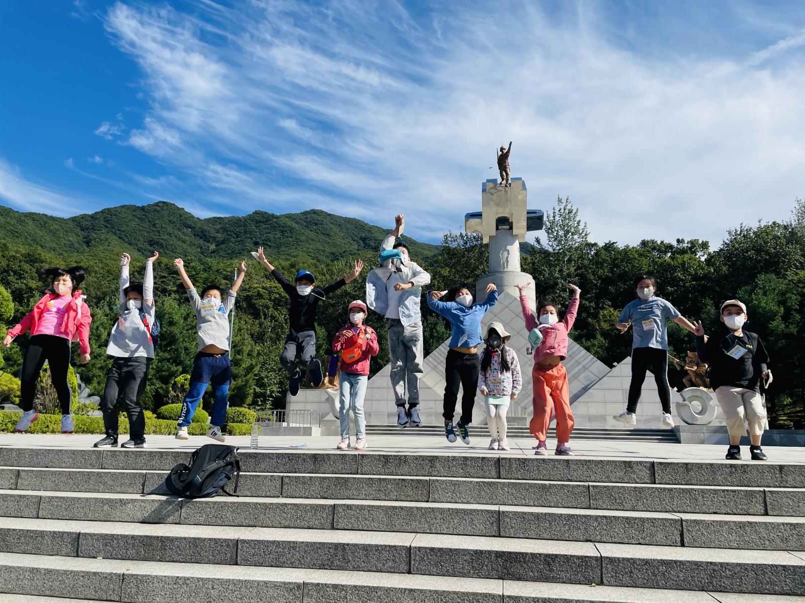 다시 현충탑으로 이동해서 물총싸움을 했어요!