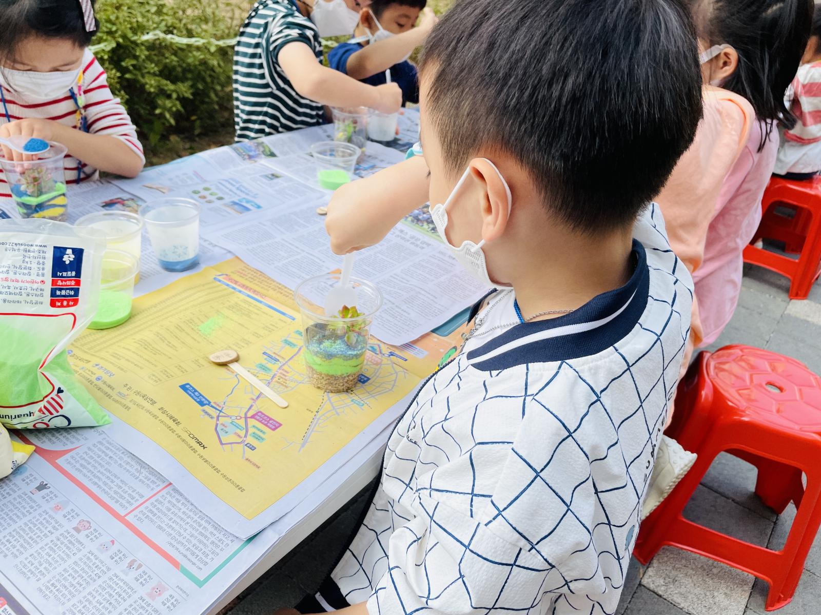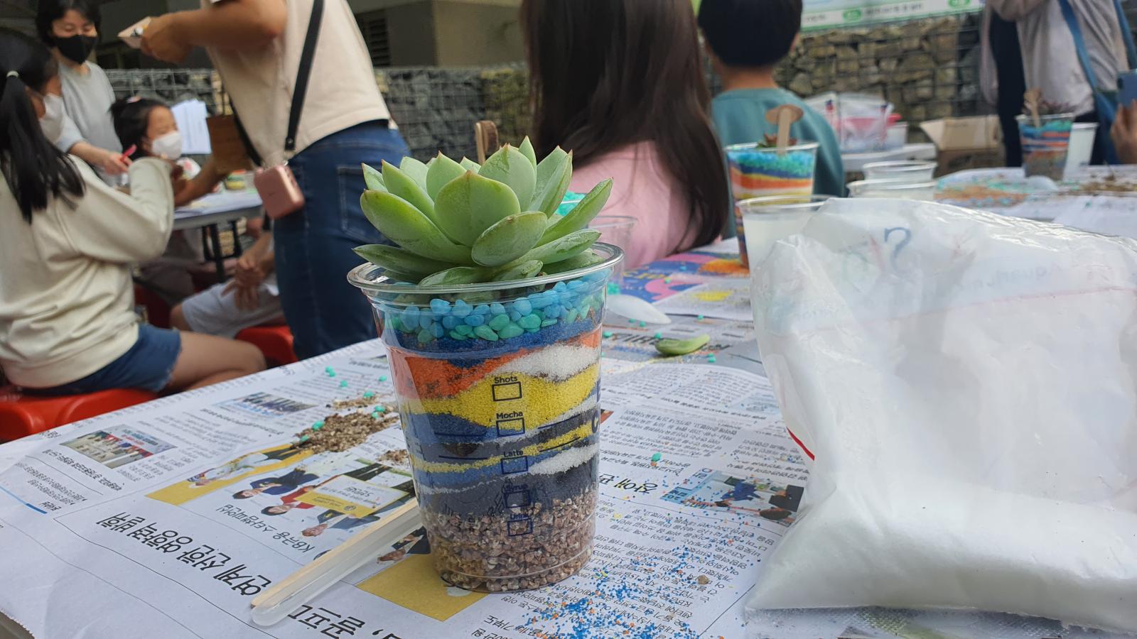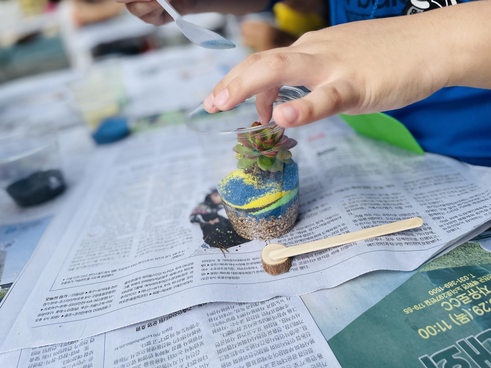 그 위에 내가 원하는 색모래를 예쁘게 담아주었어요!