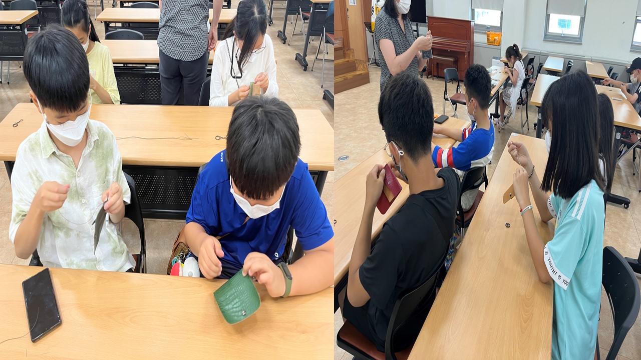 초등학교 4~6년 친구들을 대상으로 가죽 카드지갑을 만드는 시간을 가졌어요.