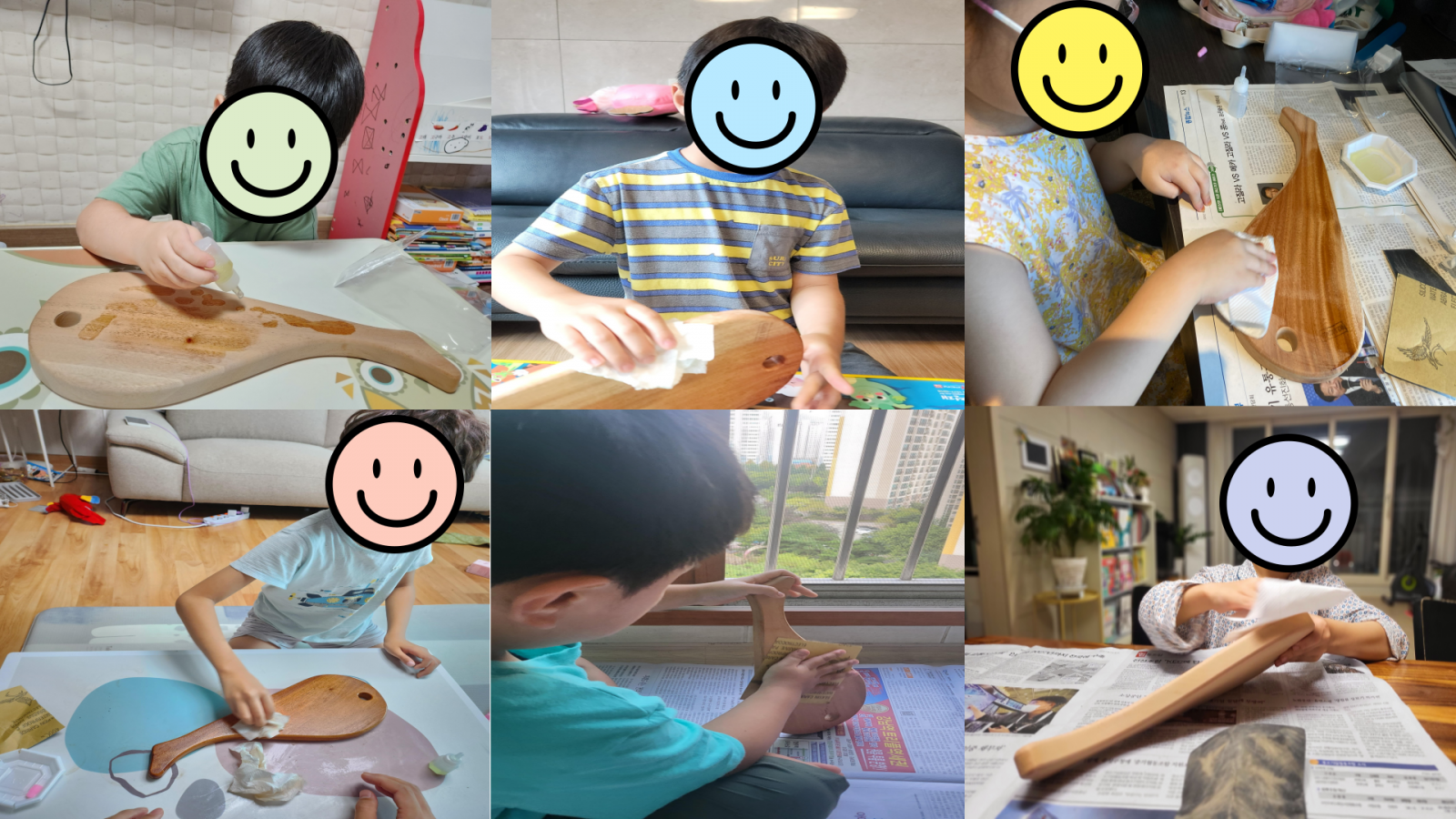 도마를 골고루 사포 작업 한 후, 포도씨유를 묻혀 오일링하고, 건조시키면 완성인 간단한 과정이었는데요.