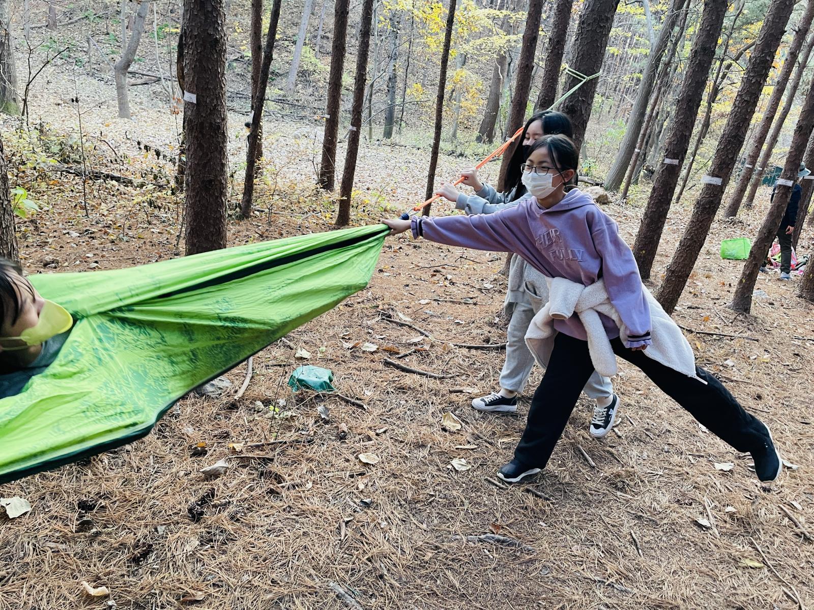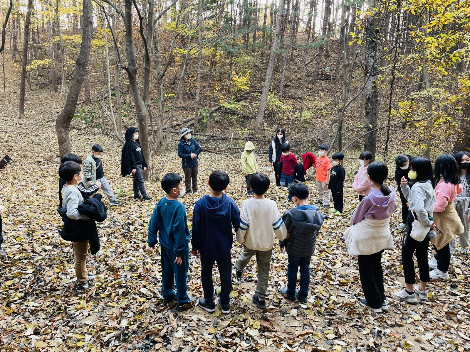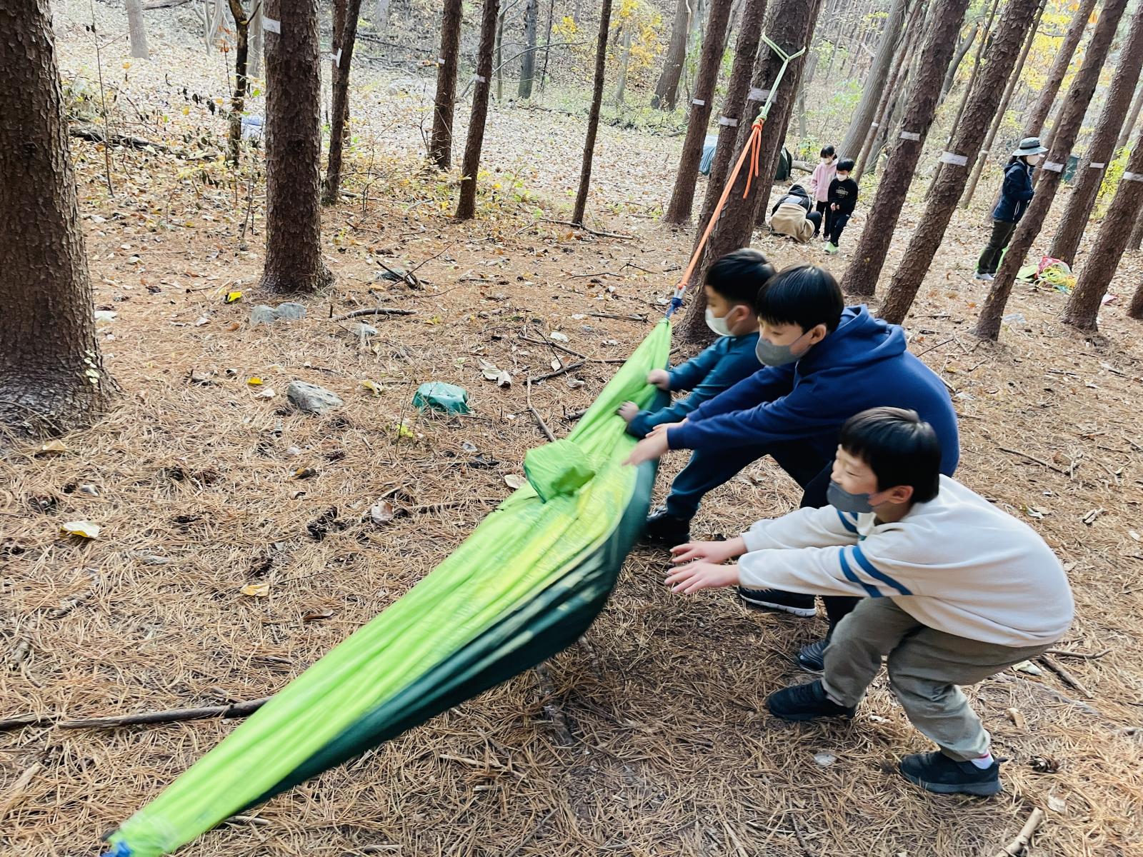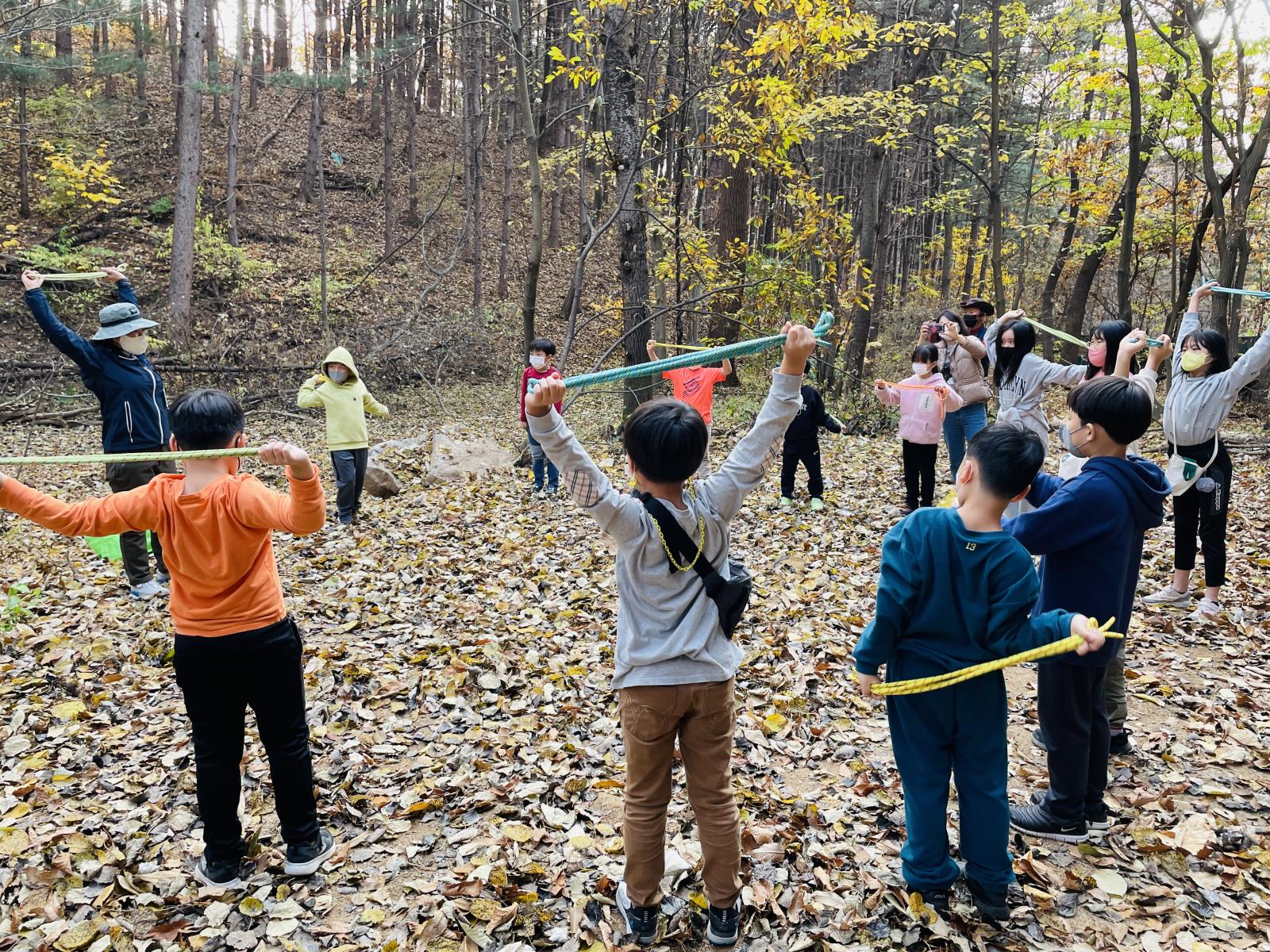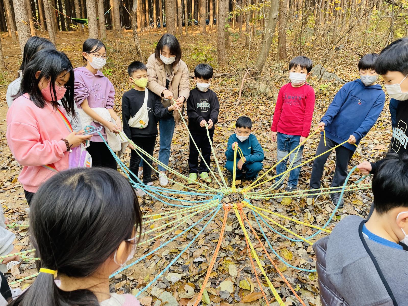 보기만해도 힐링이되는 잣나무숲에서 "숲체험"활동이 진행되었어요!