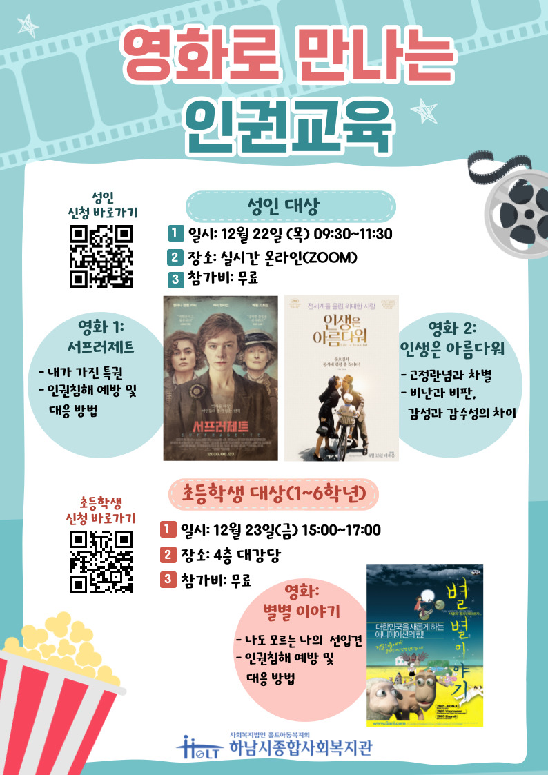 지난 12월 지역주민분들의 인권감수성 향상을 위해 영화로 만나는 인권교육으로 찾아왔습니다!